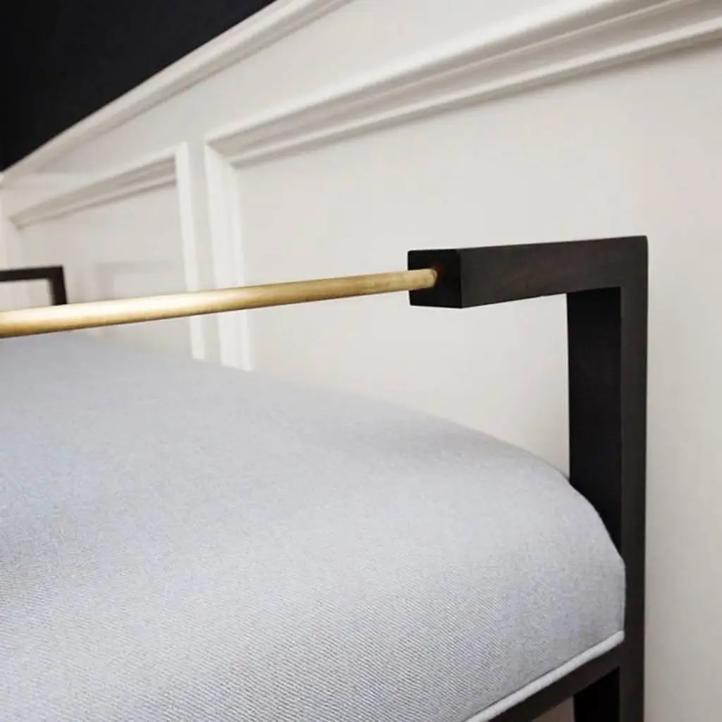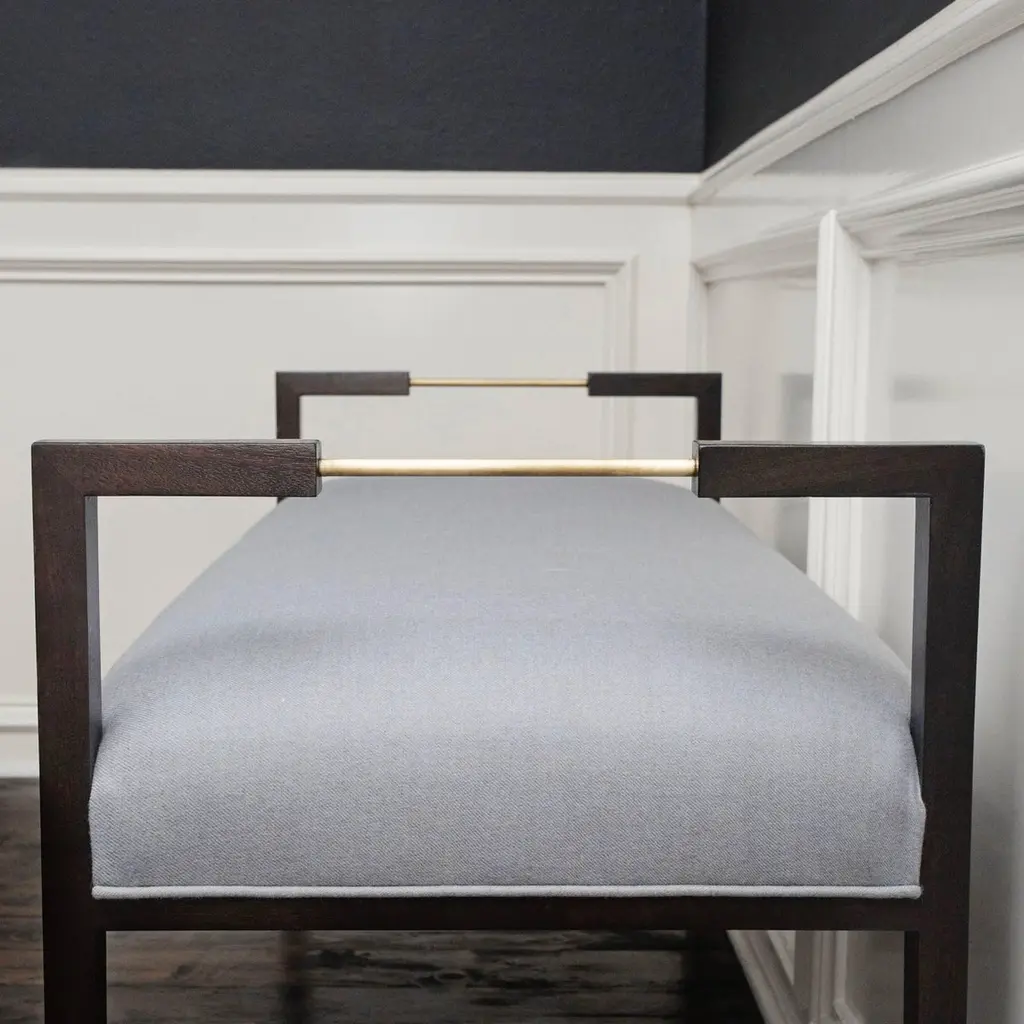 The Emma bench is our most versatile piece. Place this at the end of a bed, in an entry, in front of your fireplace; it's perfectly proportioned for anywhere in your home. A modern take on a simple Silhouette. Pictured here crafted in solid walnut, darkened brass and upholstered in luxurious wool.