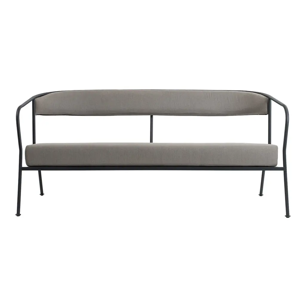 The timeless midcentury sling design meets an eternal summer in the heated Evia Lounge Bench (2018). Like the Greek Island for which it was named, the plug-in bench is made to wrap you and a companion in warmth. Temperature control from 80° to 120°F means you can fine-tune your personal comfort and enjoy life outdoors no matter the season. Made from durable cast stone with a powder-coated stainless-steel frame and adjustable rear feet, the chair offers timeless style and energy-efficient radiant warmth. Made in U.S.A.