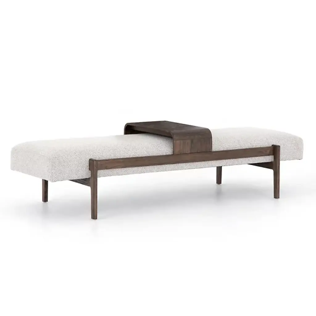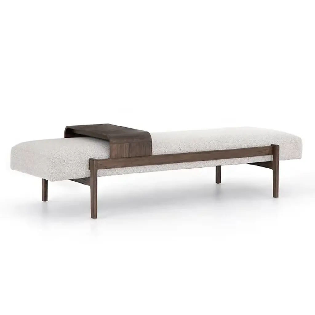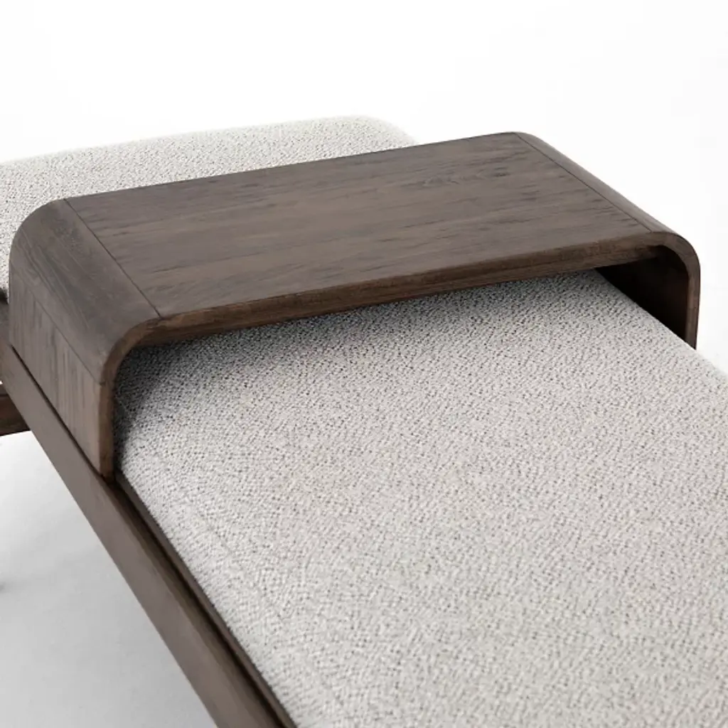 The Fawkes Bench from Four Hands draws inspiration from mid-century telephone benches. Its long, upholstered seat provides ample seating space, while a wooden sliding tray adds purpose. The tray can hold books, drinks, or decorative items, making it suitable for entryways or living rooms. The bench's frame combines wood and fabric, creating a textural divergence. Its design allows for multiple uses, from a reading nook to extra seating during gatherings.
