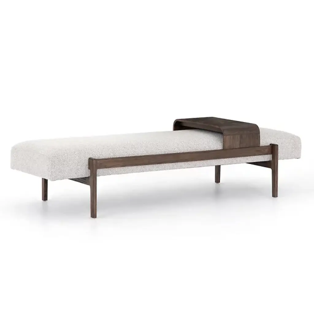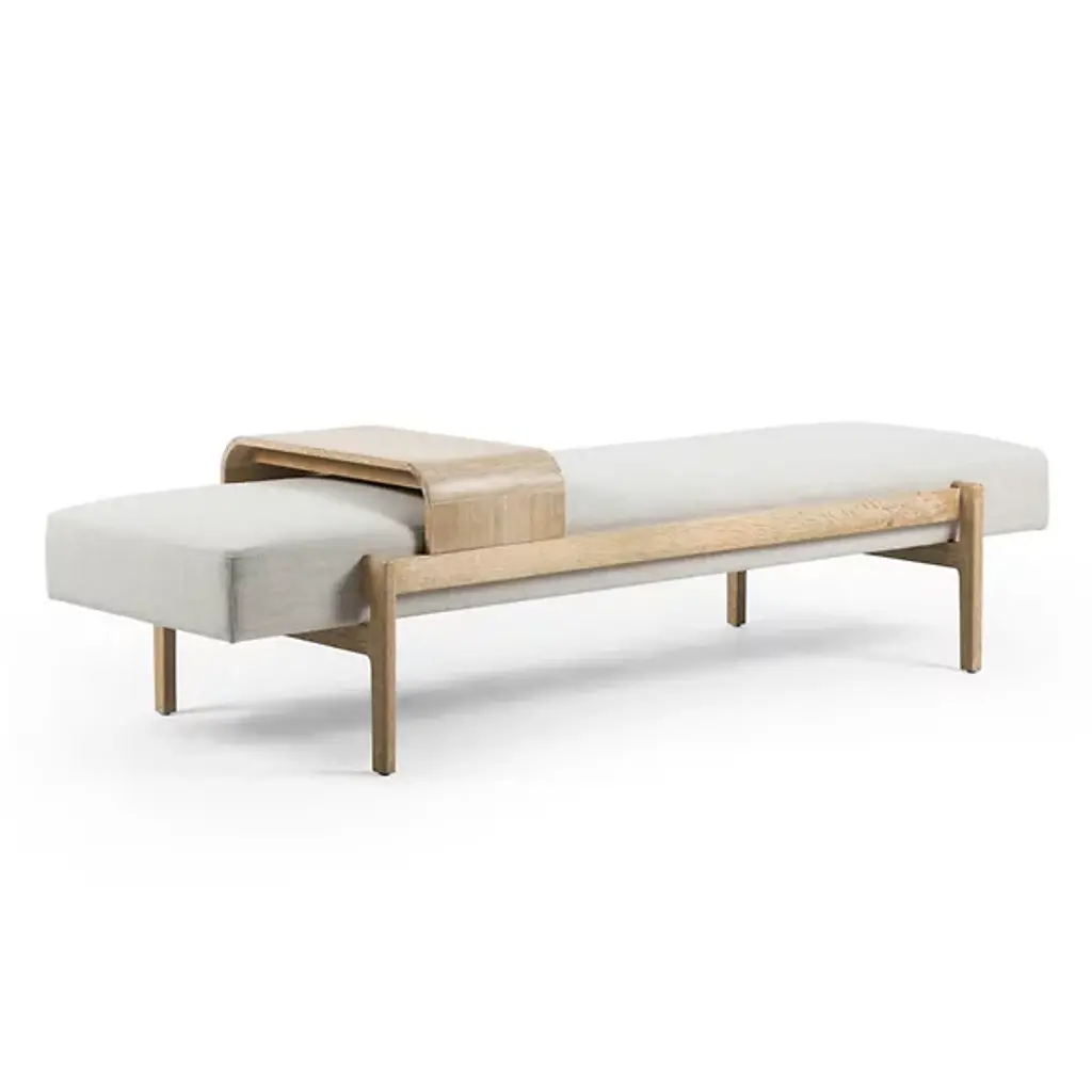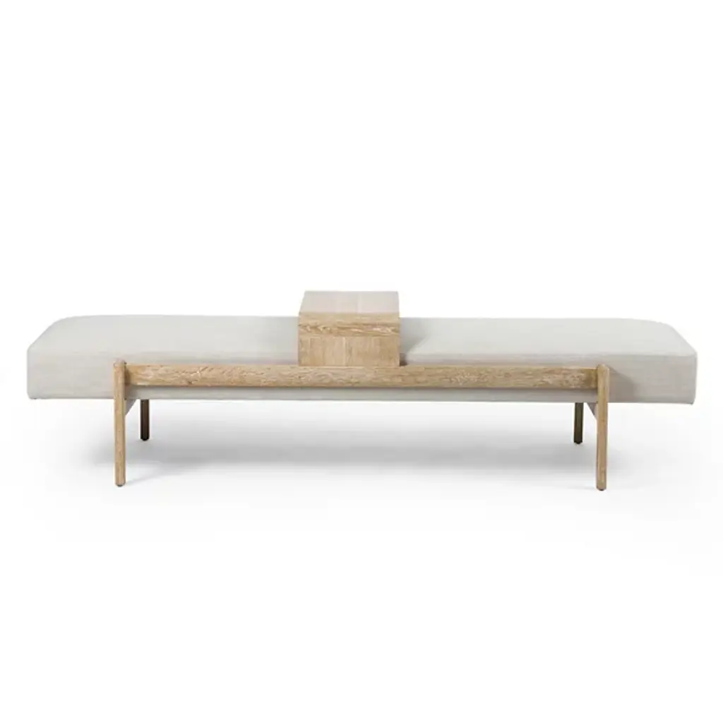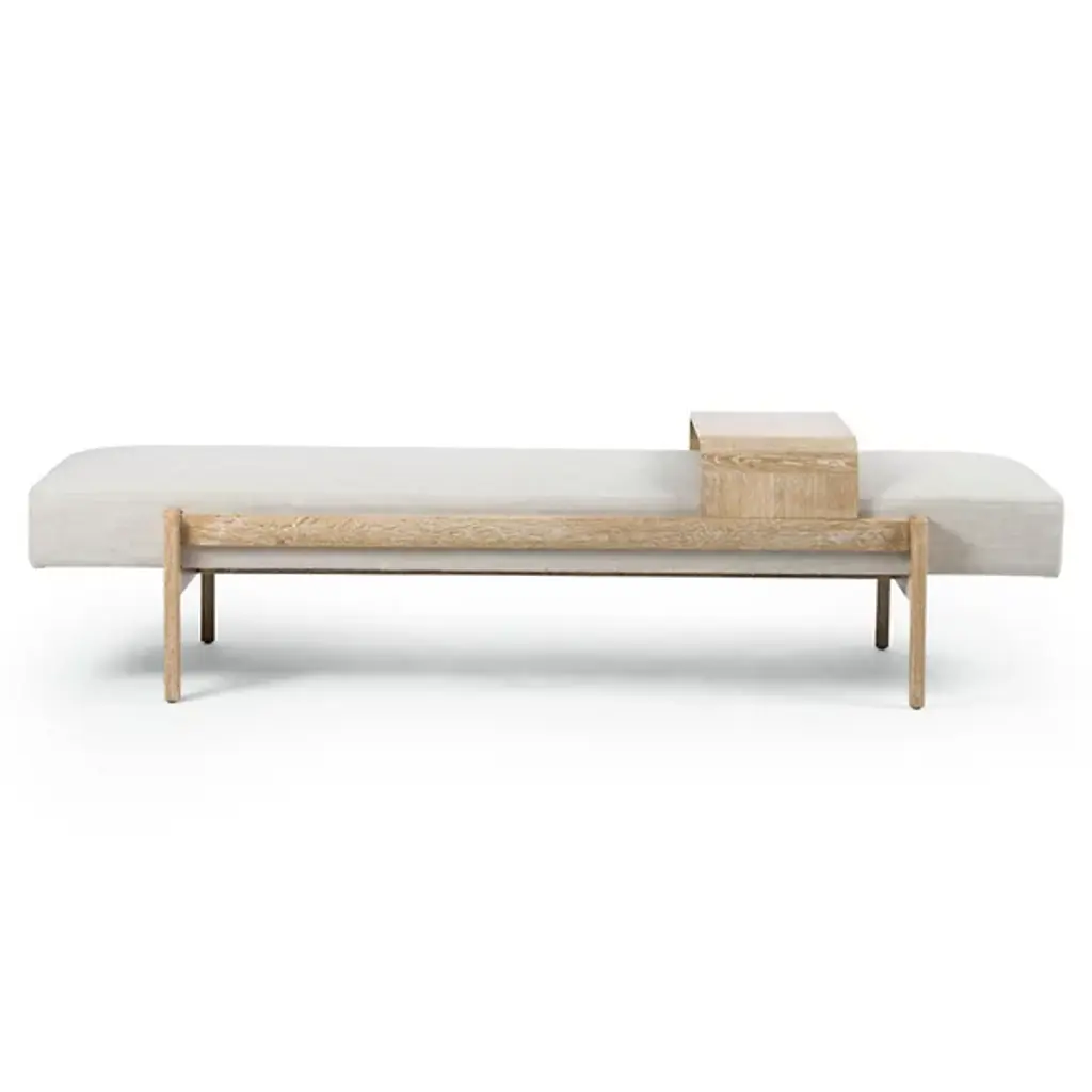 The Fawkes Bench from Four Hands draws inspiration from mid-century telephone benches. Its long, upholstered seat provides ample seating space, while a wooden sliding tray adds purpose. The tray can hold books, drinks, or decorative items, making it suitable for entryways or living rooms. The bench's frame combines wood and fabric, creating a textural divergence. Its design allows for multiple uses, from a reading nook to extra seating during gatherings.