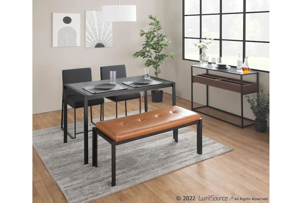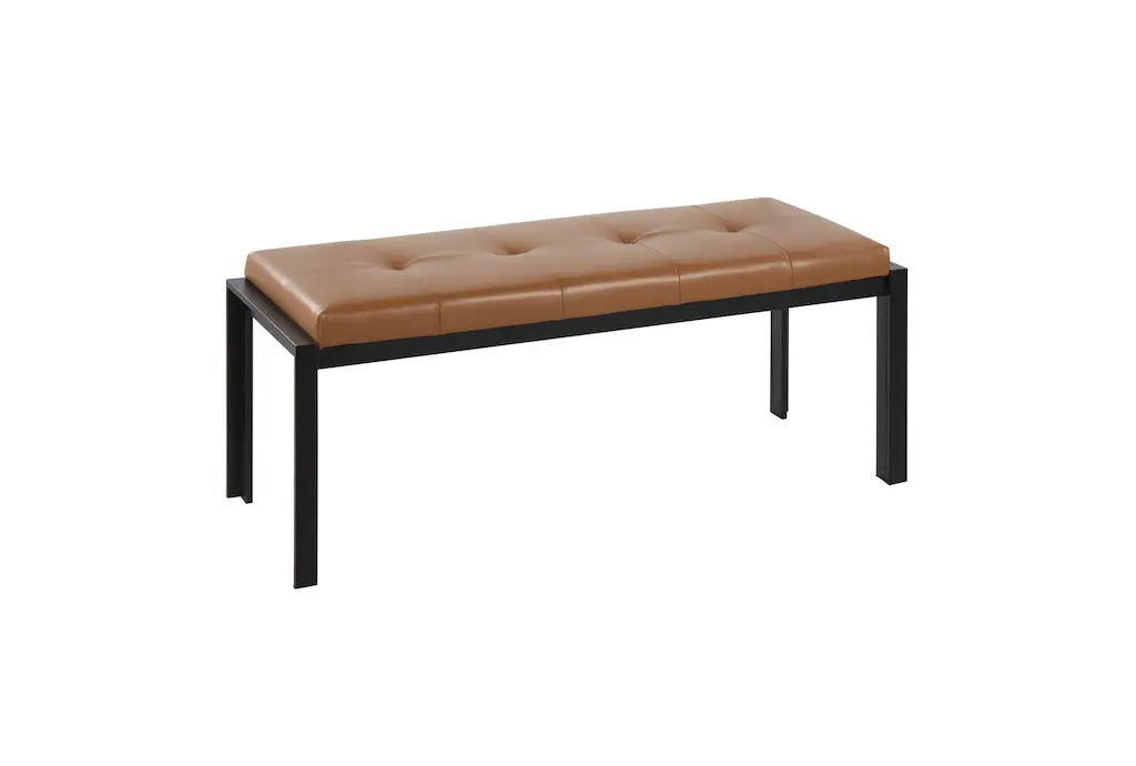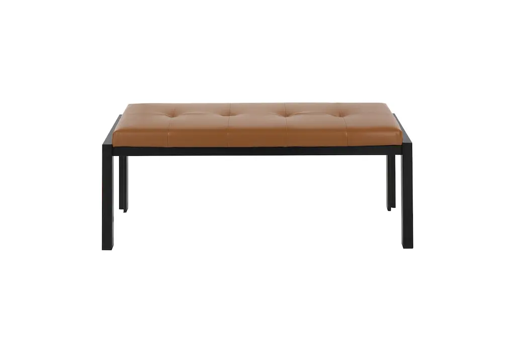 This Fede Black Metal and Camel Faux Leather Bench is a stunning addition to any modern home decor, featuring a backless design and a comfortable cushion for added style and comfort. Crafted from high-quality faux leather, this bench is both durable and stylish, making it a perfect choice for any home.