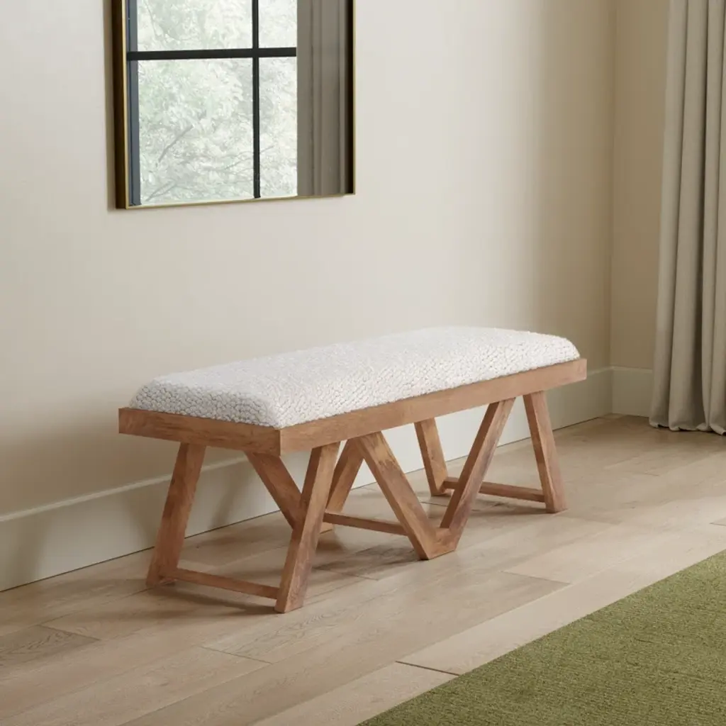 Elevate your space with this upholstered bench. Its sleek design features straight legs made of solid mango wood, while the cotton blend upholstery adds a touch of texture. Perfect for residential use, this bench is a stylish seating solution for any room.