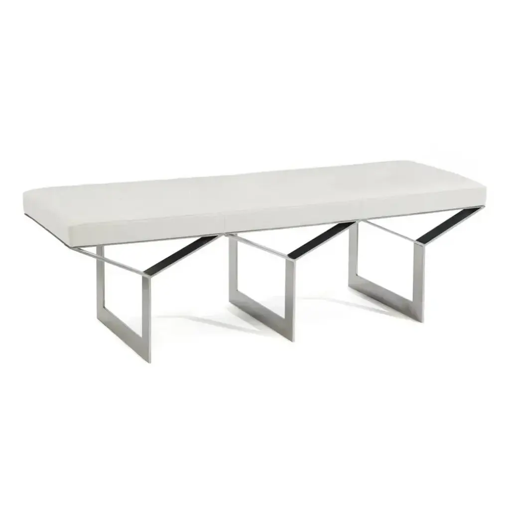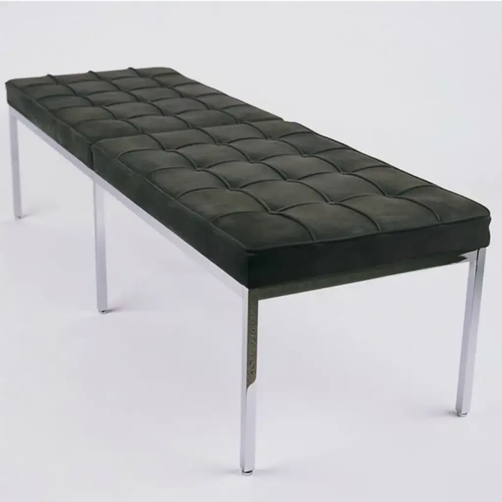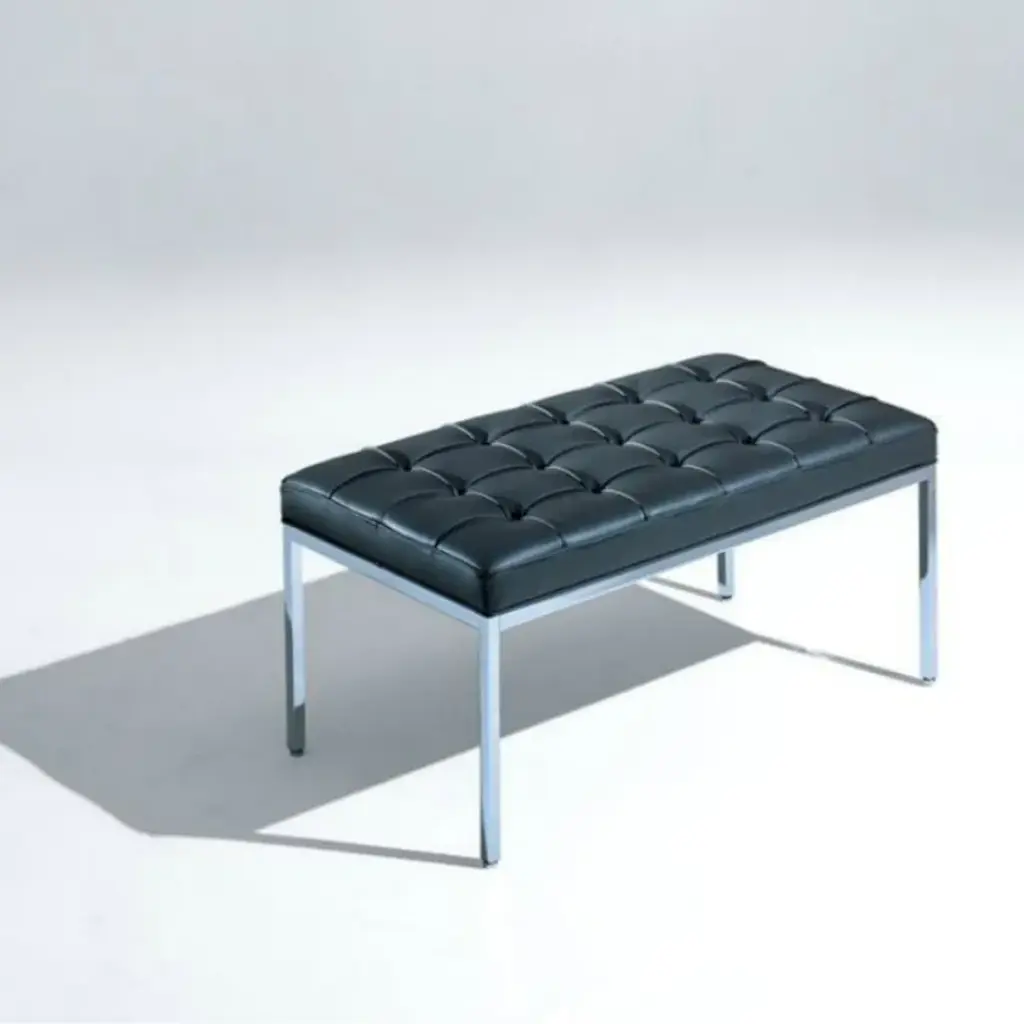 Consistent with all of her designs, Florence Knoll's Bench has a spare, geometric profile that reflects the rational design approach Florence learned from her mentor, Mies van der Rohe.FEATURESThe Florence Knoll bench is ideal in both formal and informal settings, including lobbies, reception areas, universities, museums and private homes.The KnollStudio logo and Florence Knoll's signature are stamped into the base of the frame.CONSTRUCTIONThe frame and legs are constructed of heavy gauge steel. Upholstered seat.FINISHESUpholstered seat cushion available in a wide range of fabrics and leather.The base is available in polished chrome. This product is available with foam that meets requirements for BS5852.