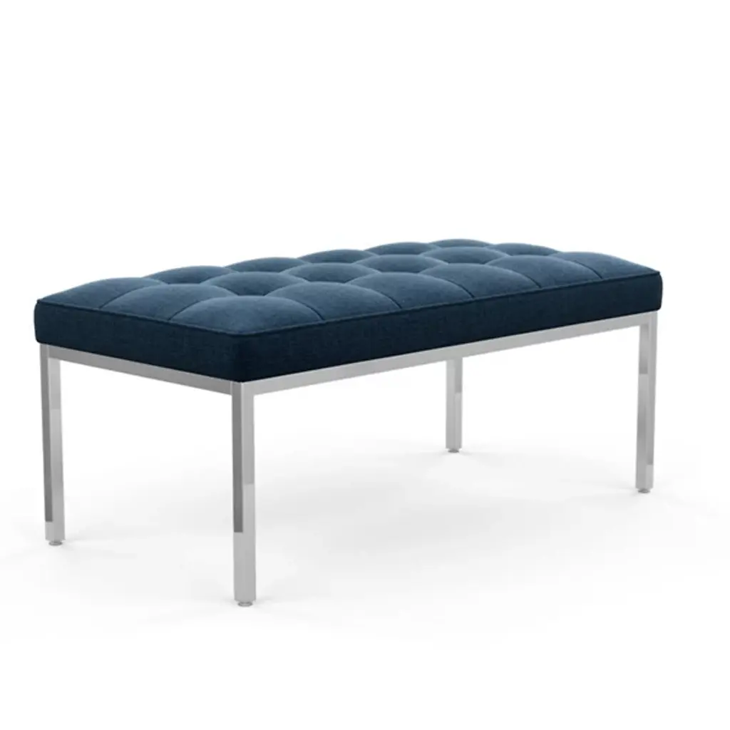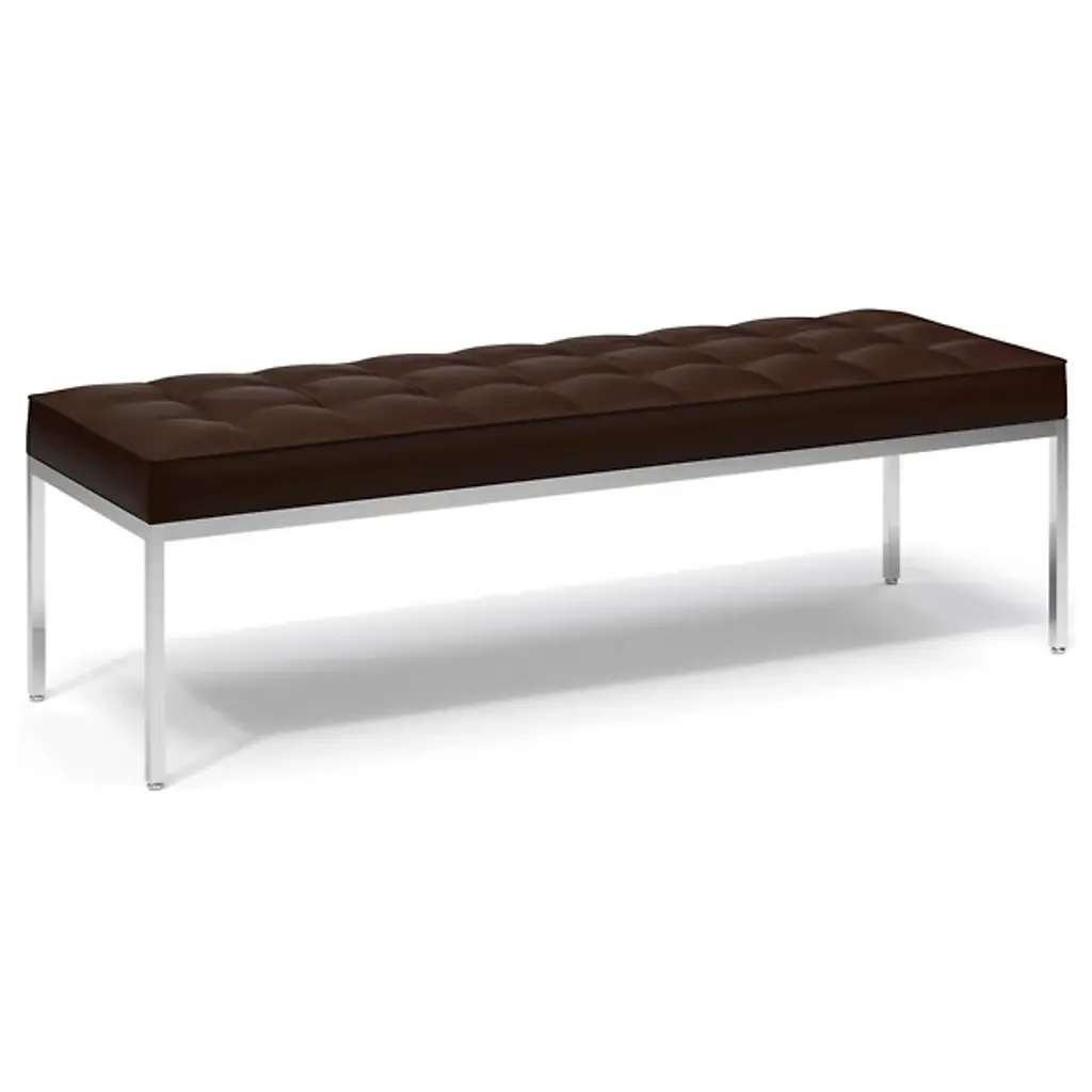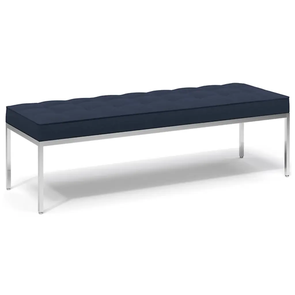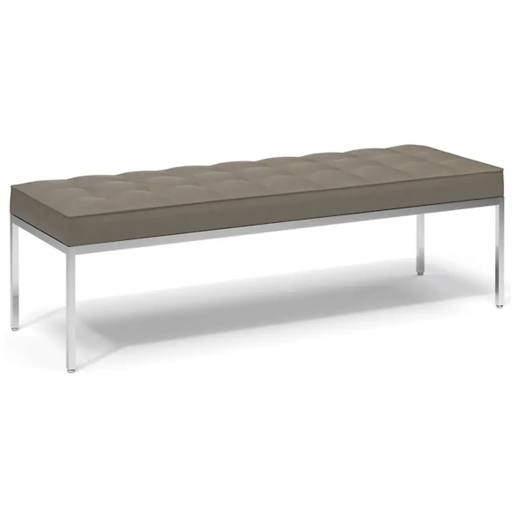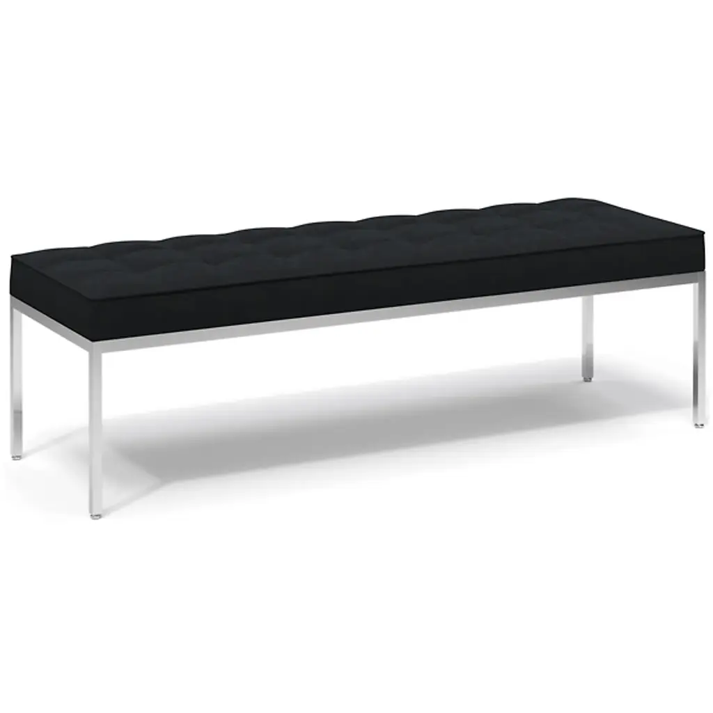 Discover a softer sit in the Florence Knoll Relaxed Collection (1954). Consistent with all of Florence Knoll's designs, this sizable bench has a spare geometric profile that reflects the objective perfectionism and rational design approach its designer learned from her mentor, Mies van der Rohe. It features a plush tufted cushion mounted atop a chromed steel base. Choose from square and rectangular versions.