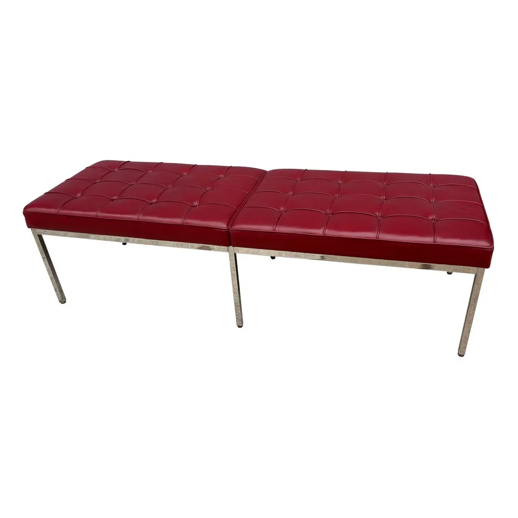 The Florence Knoll Relaxed Three-Seat Bench by Knoll offers any space a sleek, slim profile that provides cozy, cushioned seating for anyone. Florence Knoll originally designed the Florence Knoll Relaxed collection in 1954 because of clean design aesthetic. The simple, yet charming style of the three-seat bench features a long cushion with tufted upholstery that is available in different fabrics and leathers with a wide range of sumptuous colors. The frame is metal in a polished chrome finish with an interior frame made of wood, for added seating support. At the base of this modern frame, Florence Knoll’s signature and the KnollStudio logo are engraved, creating an authentic and unique piece.