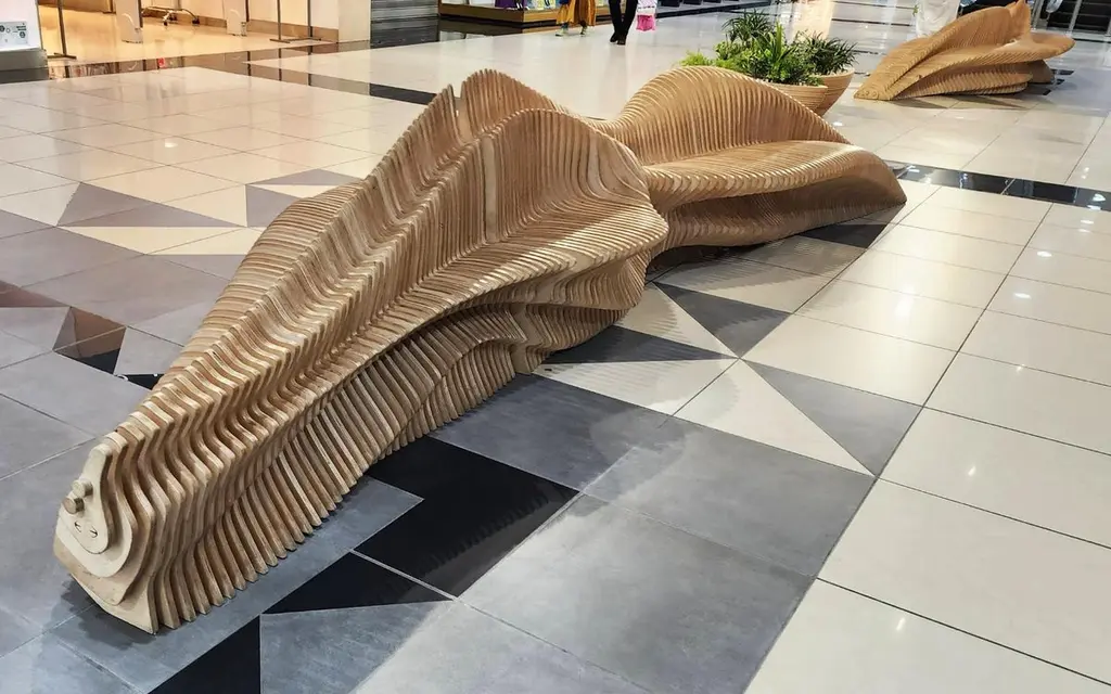 Flow Bench In Plywood - Custom Parametric Sculptural Seating