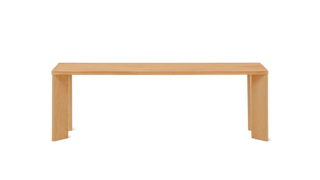 The picture of smart design. Our Frame Collection has clean, architectural lines and slim, angled legs that give you plenty of legroom. With gently rounded corners and outer edges, this bench has a softer, family-friendly finish, while solid oak construction makes for a sturdy, durable piece you’ll love for years to come.