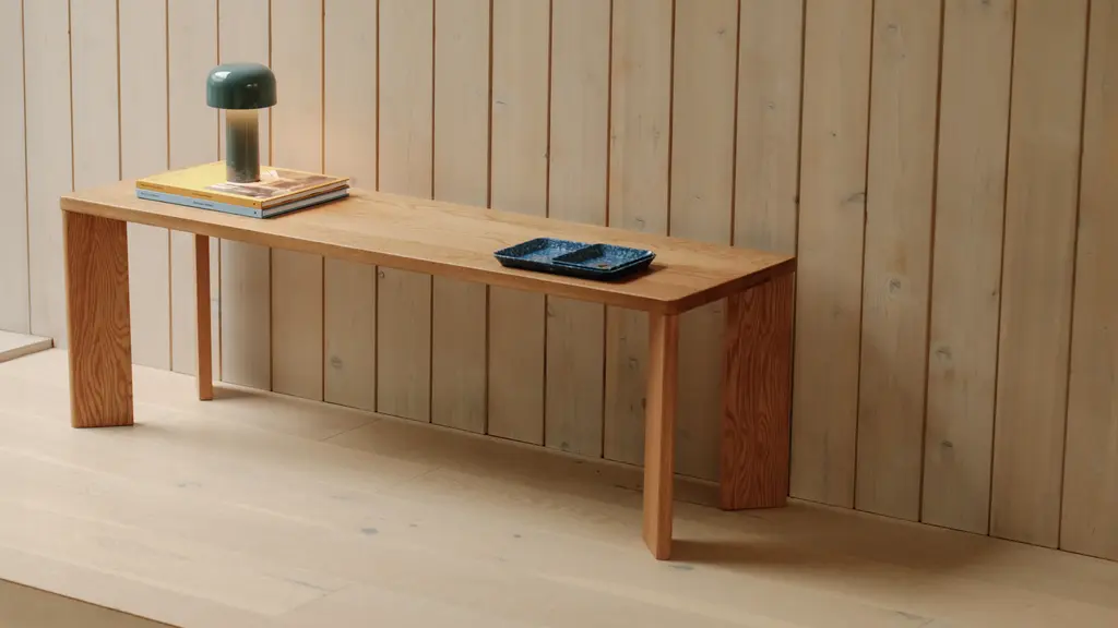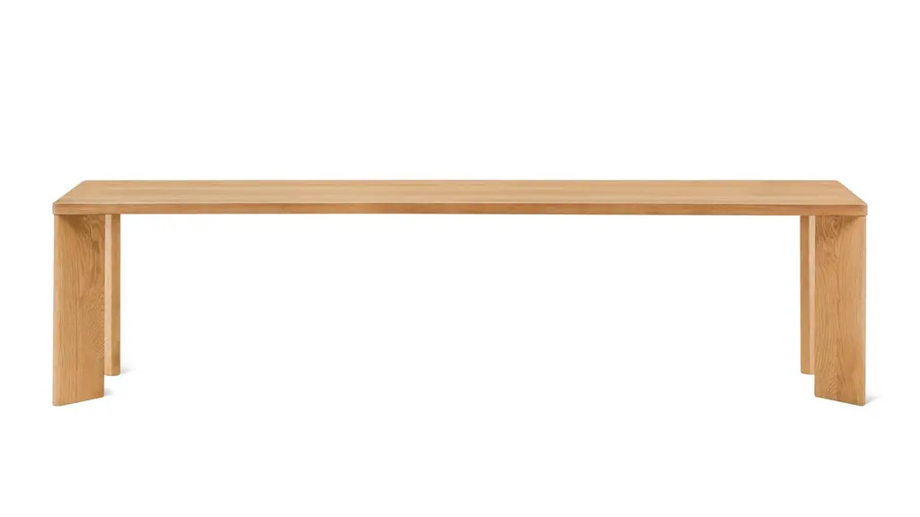 The picture of smart design. Our Frame Collection has clean, architectural lines and slim, angled legs that give you plenty of legroom. With gently rounded corners and outer edges, this bench has a softer, family-friendly finish, while solid oak construction makes for a sturdy, durable piece you’ll love for years to come.