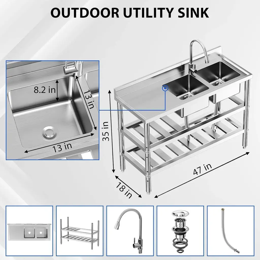 Spacious Dimensions: This utility sink provides ample space for washing, prepping, and completing utility tasks in various settings. Its generous size makes it ideal for both home and commercial use, accommodating a range of activities effectively. Versatile Applications: Designed for a wide range of environments, this sink is perfect for kitchens, restaurants, laundries, garages, workshops, and outdoor spaces. Its adaptability allows it to serve multiple purposes, catering to various tasks and user needs. Dual Compartment Design: The sink features a dual compartment design that enhances efficiency and organization. With separate areas for washing and prepping, users can multitask effectively, streamlining workflows and improving productivity. Durable Construction: Built to withstand heavy-duty use in both commercial and residential settings, this sink is crafted from high-quality materials that ensure long-lasting performance and reliability. Its robust construction is designed to handle the demands of frequent usage. Easy Installation: The freestanding design of this utility sink allows for straightforward setup without the need for complex plumbing. This feature makes it ideal for quick and hassle-free installation in any location, providing convenience for users who need an efficient working solution.