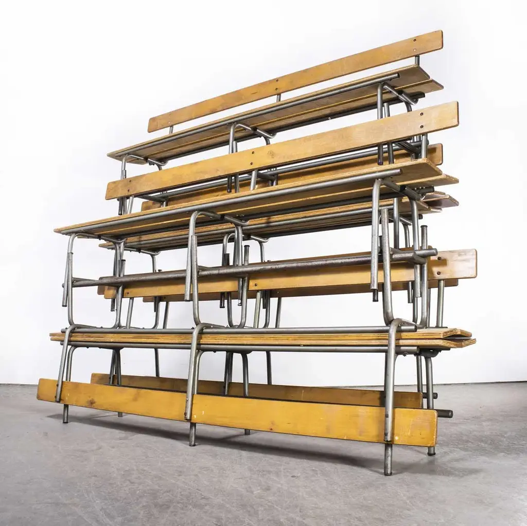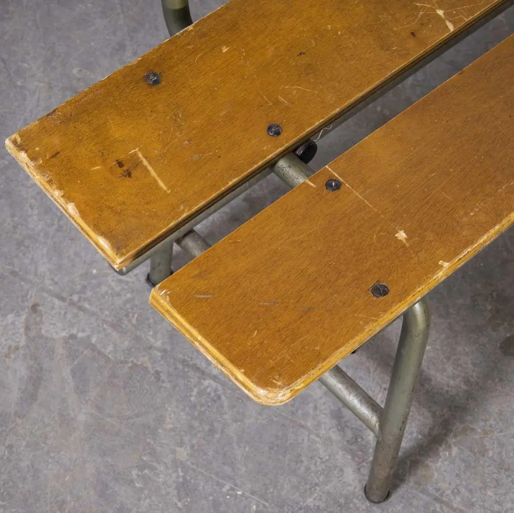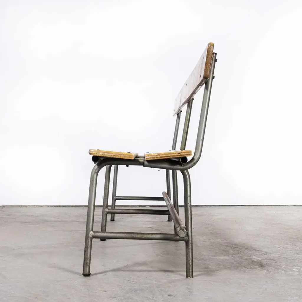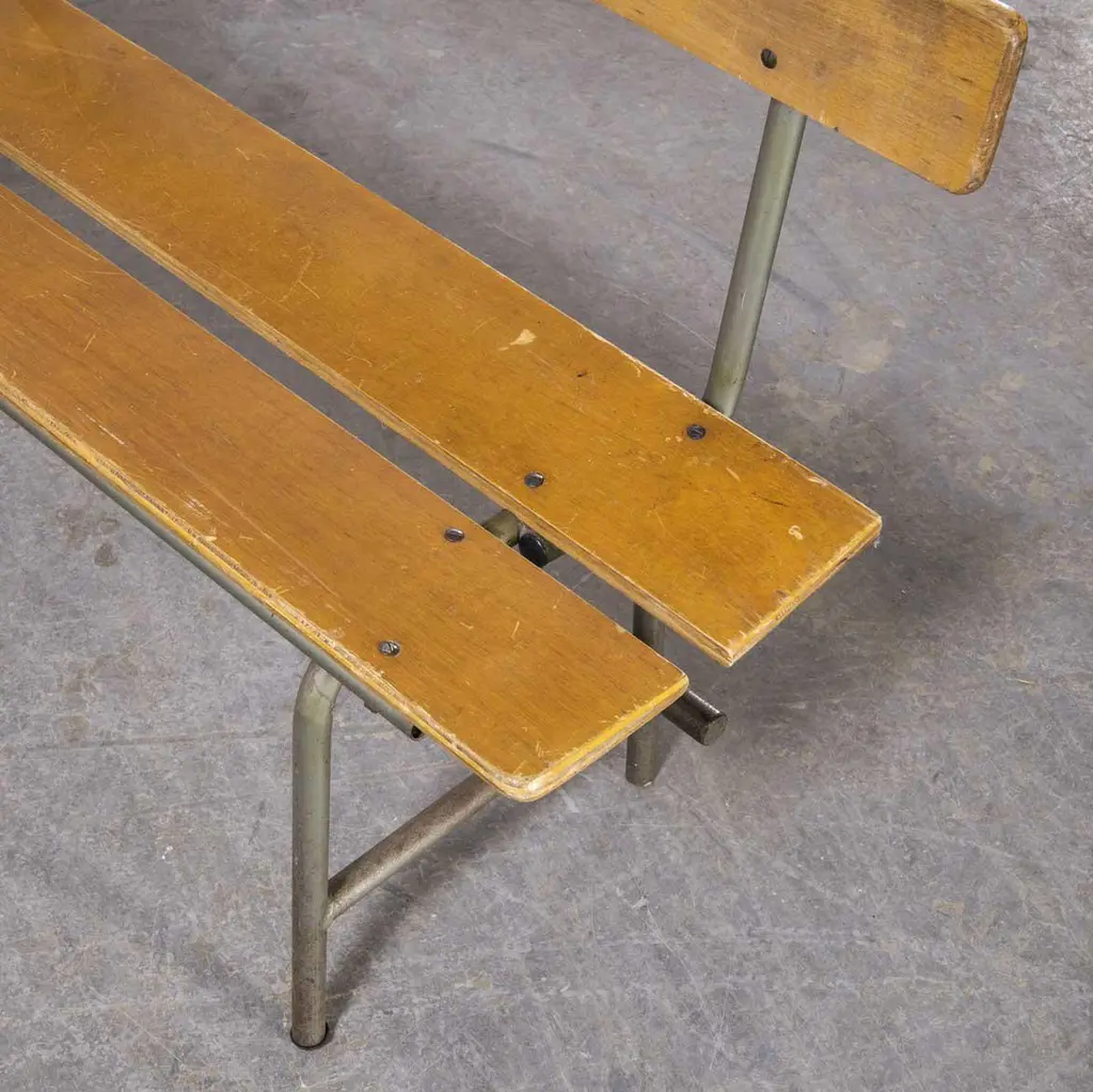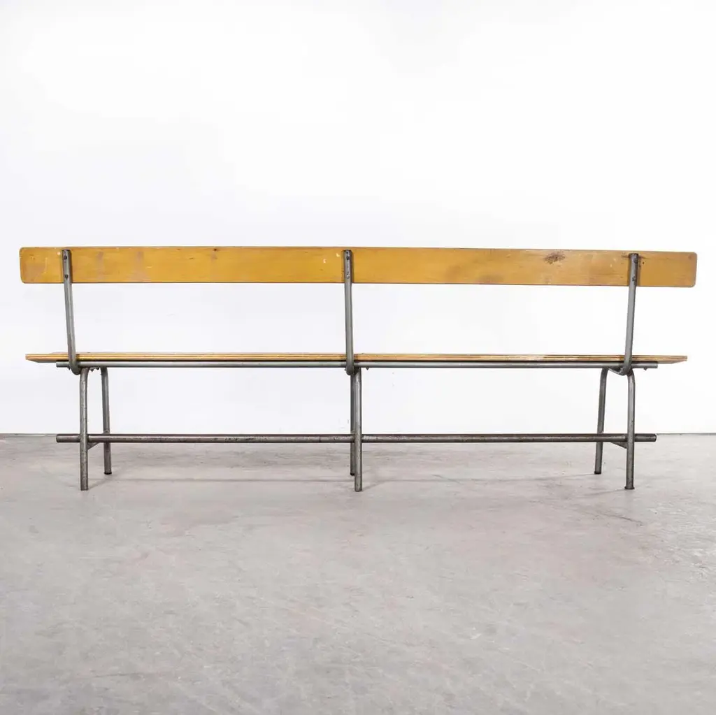 This is a 1960’s original French Mullca school bench with back. Mullca, one of our favourite makers, in 1947 Robert Muller and Gaston Cavaillon created the company that went on to develop arguably the most famous French school chair. Sadly, the company no longer exists but vintage chairs and benches can still be found; beautifully made with a strong tubular frame with birch seats and back inserts. Ours date from the late 1960’s and are in exceptional condition. With sturdy tubular frames, beech seat and back slats, they are perfect in halls or as general seating. We service and check each bench before it leaves our workshop and we deliver vintage of excellent quality. Seat Height 45 cm. This piece is attributed to the mentioned designer/maker. It has no attribution mark and no official proof of authenticity, however it is well documented in design history. I take full responsibility for any authenticity issues arising from misattribution