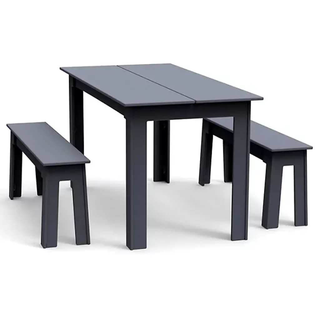 A simple and versatile way to elevate your space. The Fresh Air Outdoor Bench from Loll Designs offers a casual and comfortable seating option for indoor or outdoor use. Its minimal design makes it easy to integrate into a décor theme or style, with a range of colors available to add a pop of color or match the environment. This sustainably made bench is crafted from recycled milk jugs and non-recycled HDPE. Its durable, low-maintenance material is naturally fade and water-resistant.