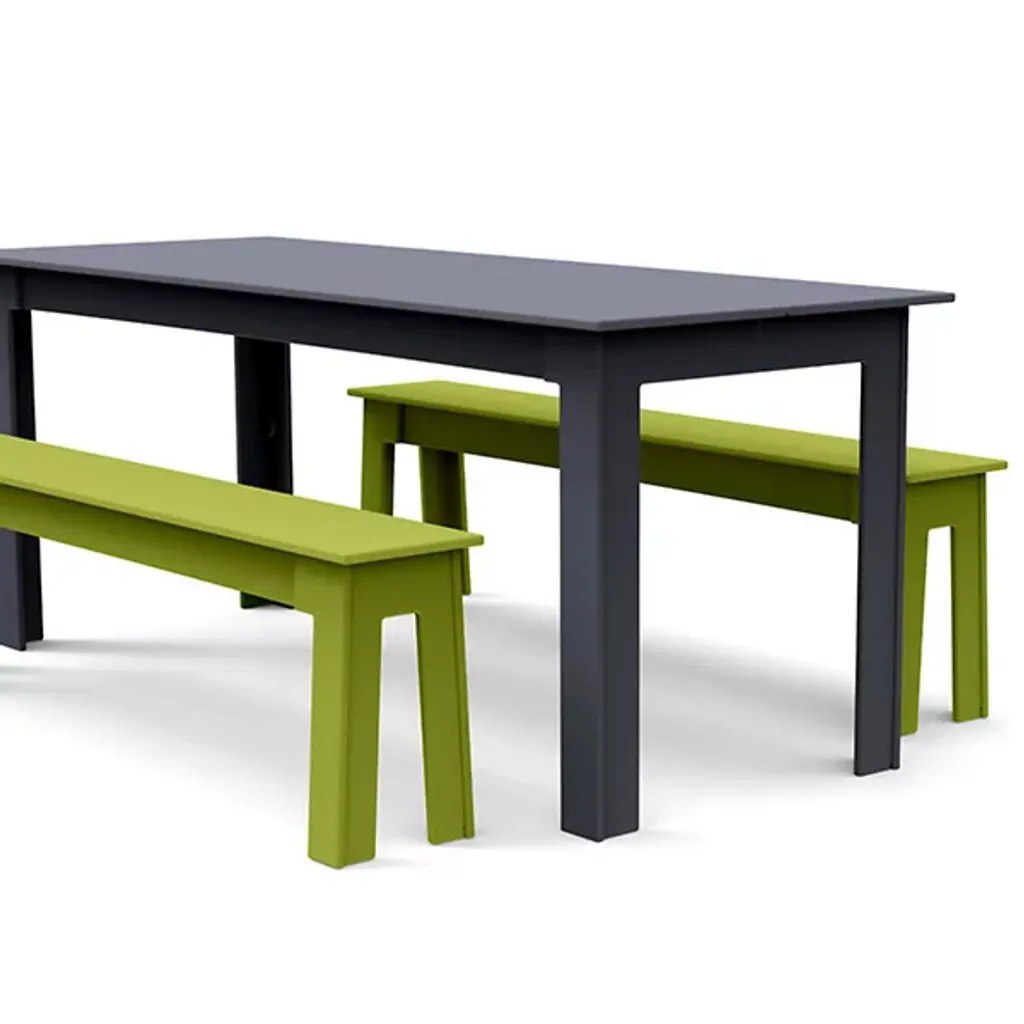 A simple and versatile way to elevate your space. The Fresh Air Outdoor Bench from Loll Designs offers a casual and comfortable seating option for indoor or outdoor use. Its minimal design makes it easy to integrate into a décor theme or style, with a range of colors available to add a pop of color or match the environment. This sustainably made bench is crafted from recycled milk jugs and non-recycled HDPE. Its durable, low-maintenance material is naturally fade and water-resistant.