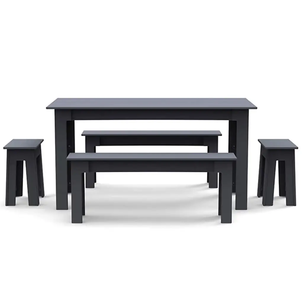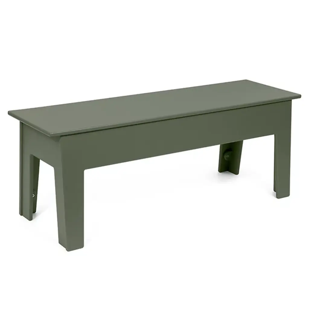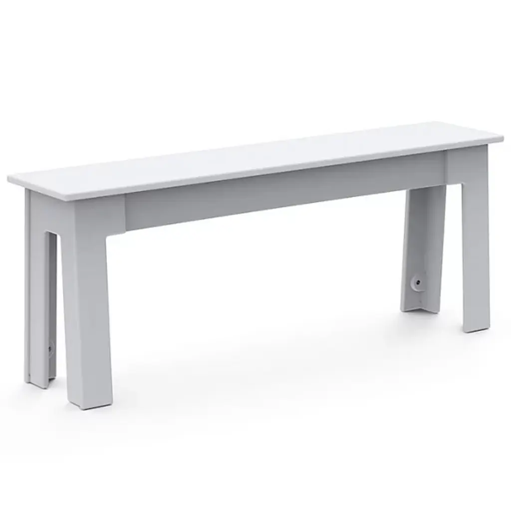 A simple and versatile way to elevate your space. The Fresh Air Outdoor Bench from Loll Designs offers a casual and comfortable seating option for indoor or outdoor use. Its minimal design makes it easy to integrate into a décor theme or style, with a range of colors available to add a pop of color or match the environment. This sustainably made bench is crafted from recycled milk jugs and non-recycled HDPE. Its durable, low-maintenance material is naturally fade and water-resistant.