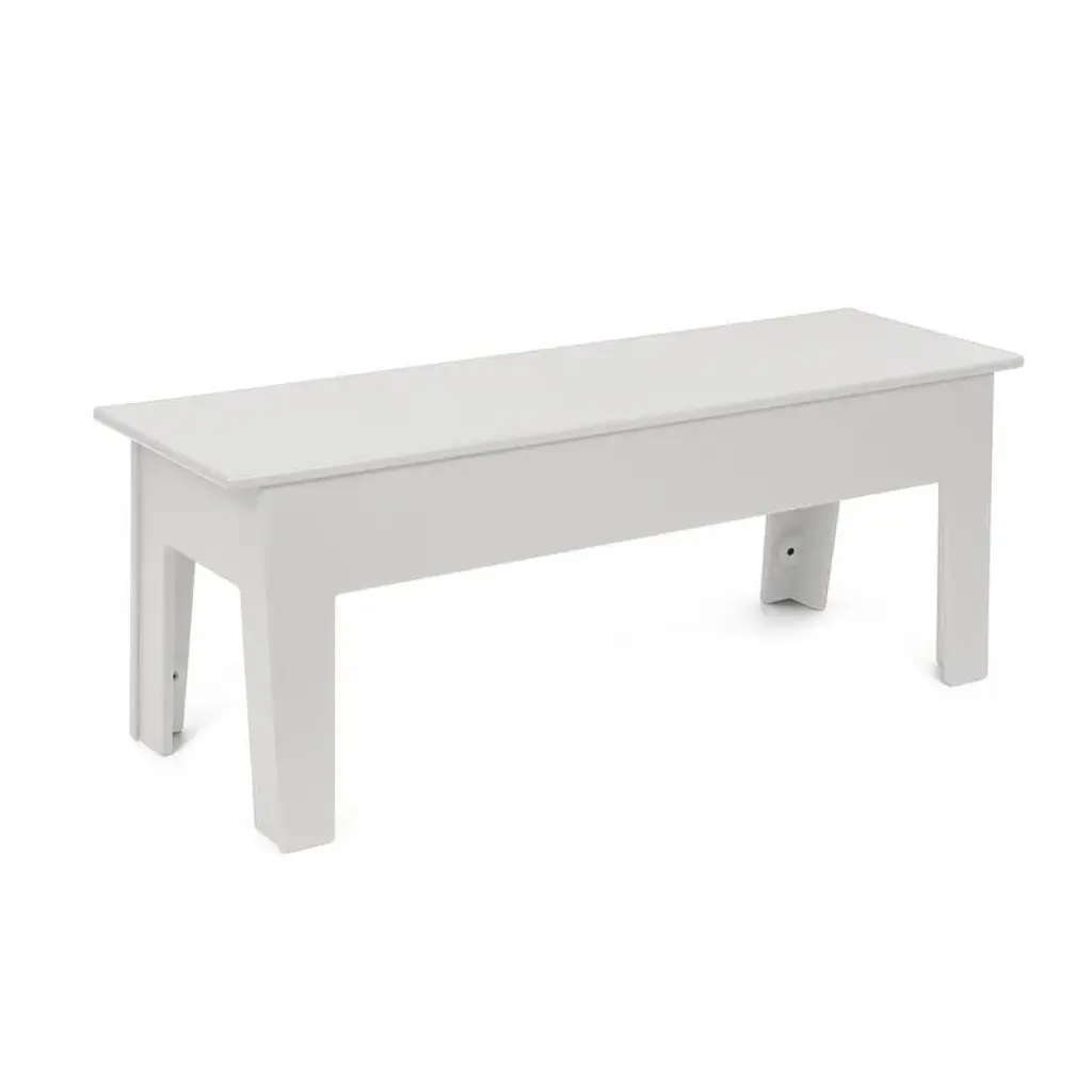 A simple and versatile way to elevate your space. The Fresh Air Outdoor Bench from Loll Designs offers a casual and comfortable seating option for indoor or outdoor use. Its minimal design makes it easy to integrate into a décor theme or style, with a range of colors available to add a pop of color or match the environment. This sustainably made bench is crafted from recycled milk jugs and non-recycled HDPE. Its durable, low-maintenance material is naturally fade and water-resistant.