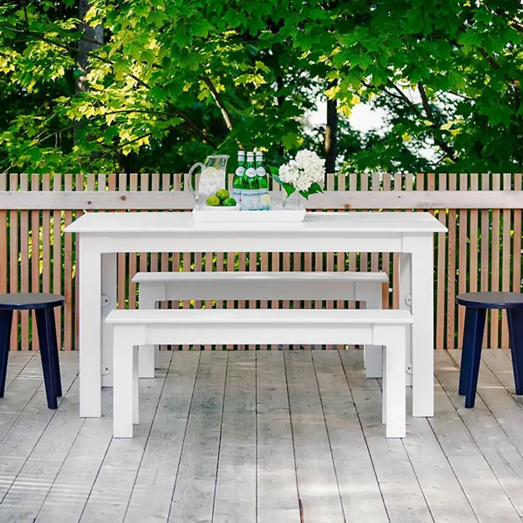 A simple and versatile way to elevate your space. The Fresh Air Outdoor Bench from Loll Designs offers a casual and comfortable seating option for indoor or outdoor use. Its minimal design makes it easy to integrate into a décor theme or style, with a range of colors available to add a pop of color or match the environment. This sustainably made bench is crafted from recycled milk jugs and non-recycled HDPE. Its durable, low-maintenance material is naturally fade and water-resistant.