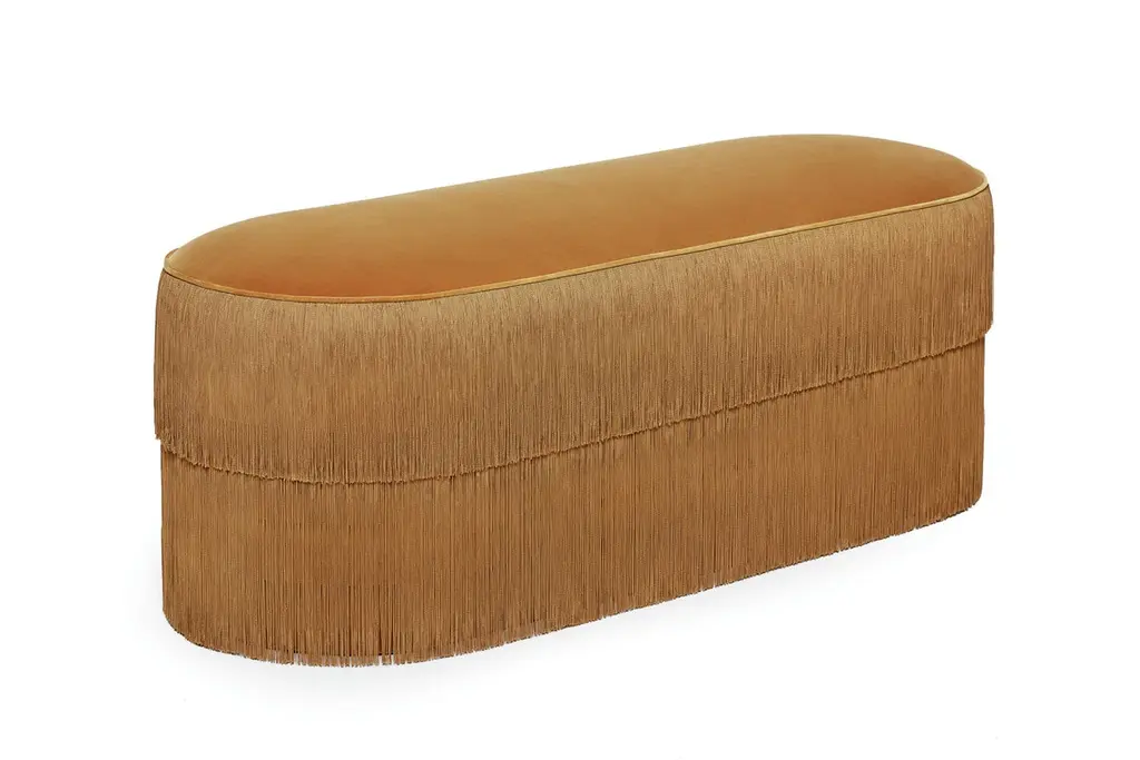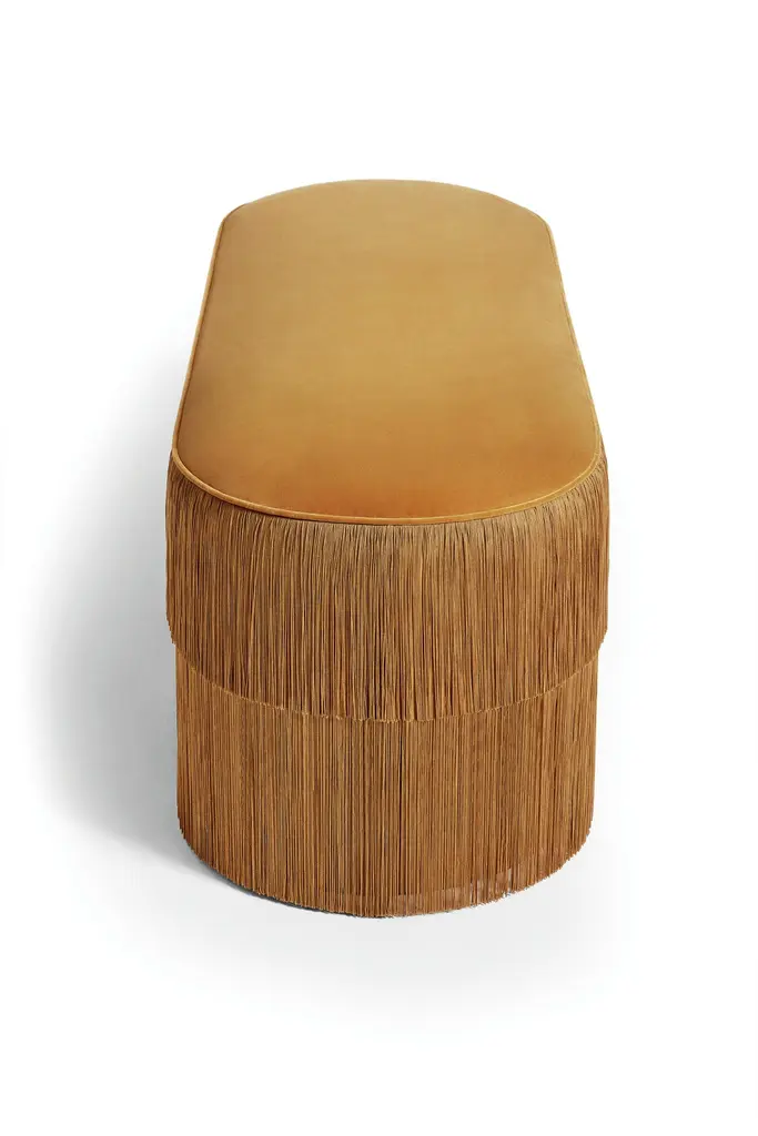 Fringes 140 Bench by MunnaDimensions: D 50 x W 140 x H 50 cm. SH: 50 cm.Materials: Wood, foam, and upholstery.Finish: Cotton Velvet upholstery and fringes.Available in all Munna fabrics except Wild silk, Leather, and Classic Leather.Available in client’s own material. Available in all Munna fringes. Not available in the client’s material. Handmade in Porto. Please contact us.Established in Porto in 2008, Munna is a furniture design brand renowned for creating handmade upholstery with unmatched craftsmanship, seamlessly blending noble materials and timeless design, for both commercial and residential projects.Made by hand in Porto, Munna’s pieces honor the profound heritage of craftsmanship, while drawing inspiration from history’s most influential artistic periods. Munna’s pieces are made of the finest fabrics such as cotton velvet, twill, leather, and silk; the finest wood veneers, such as ebony, walnut, and rosewood; sumptuous gold, silver, and copper leaves, metal details in brass, nickel, and copper, and superior lacquers.