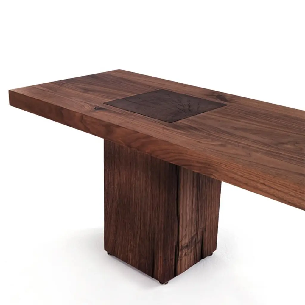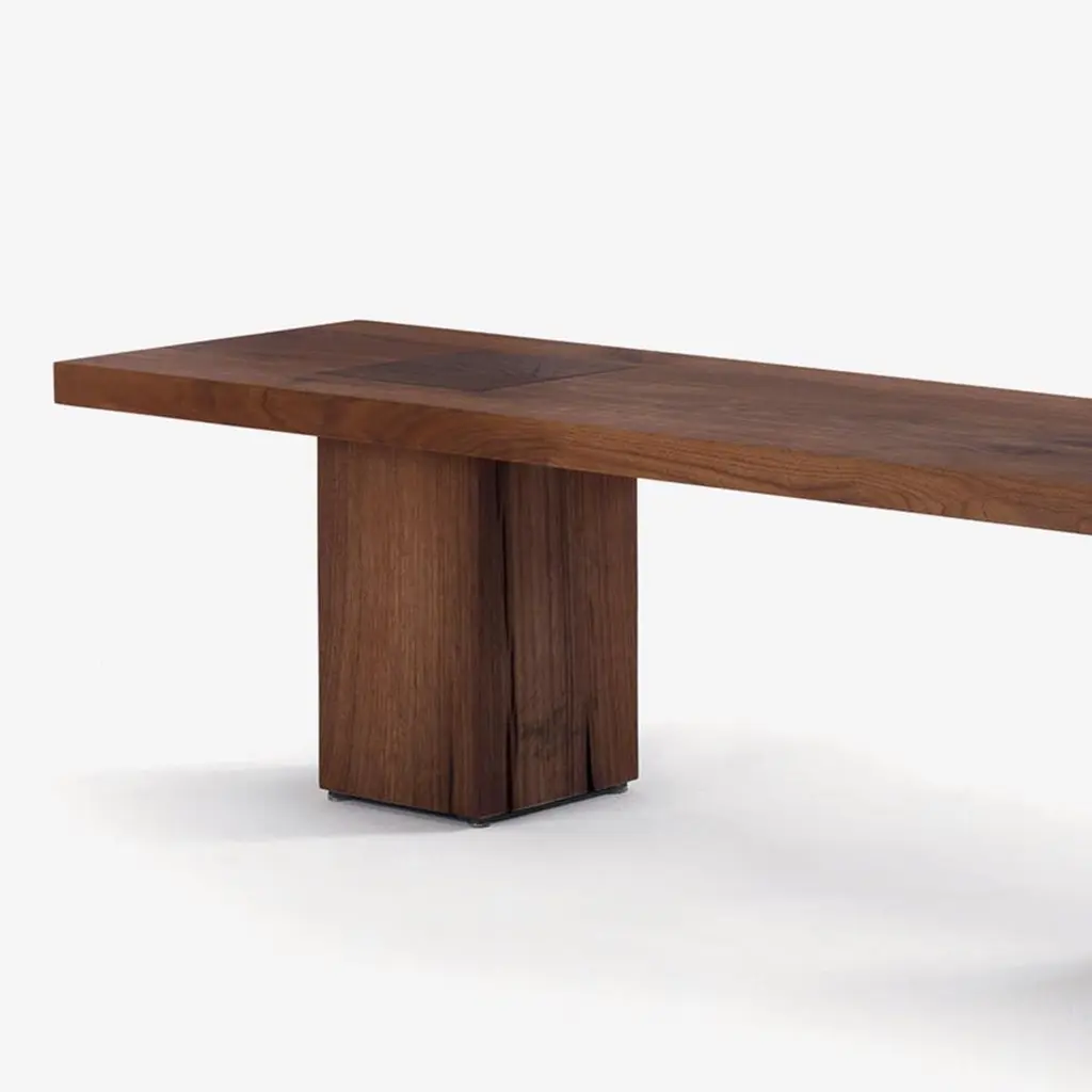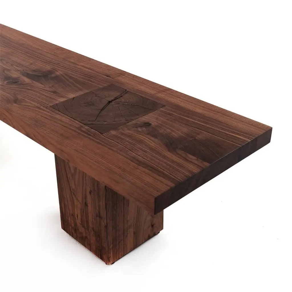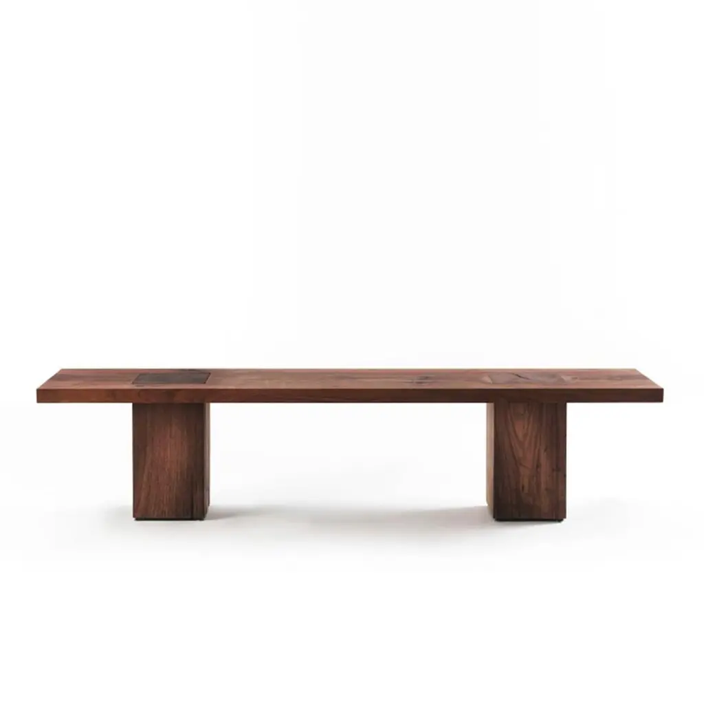 Bench full wood with all structure in solidwalnut wood with knots, the 2 bases arepassing through the top.Also available in solid oak wood with knots.Available in:L180xD45xH45cm, price: 6900,00€.L200xD45xH45cm, price: 7200,00€.L220xD45xH45cm, price: 7500,00€.L240xD45xH45cm, price: 7800,00€.L260xD45xH45cm, price: 8100,00€.L280xD45xH45cm, price: 8400,00€.