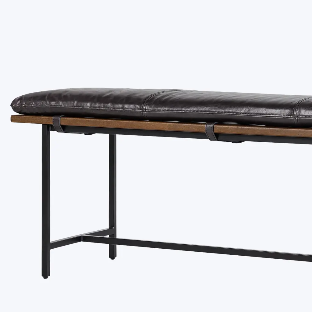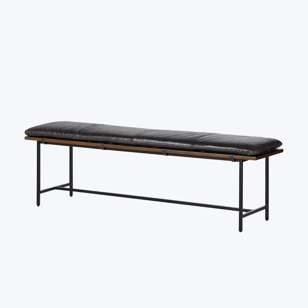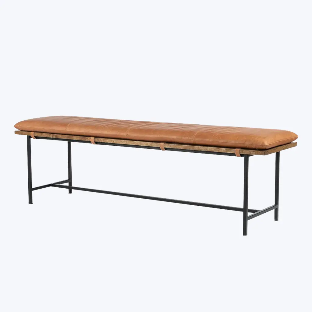 Discover the Gabine Accent Bench by Four Hands. Inspired by French antiques, this refined bench is designed to elevate transitional spaces. Airy, black-finished iron legs beautifully complement a nettlewood bench with top-grain leather seating. Style in a hallway or entryway. Choose from Brandy and Sonoma Black leather.