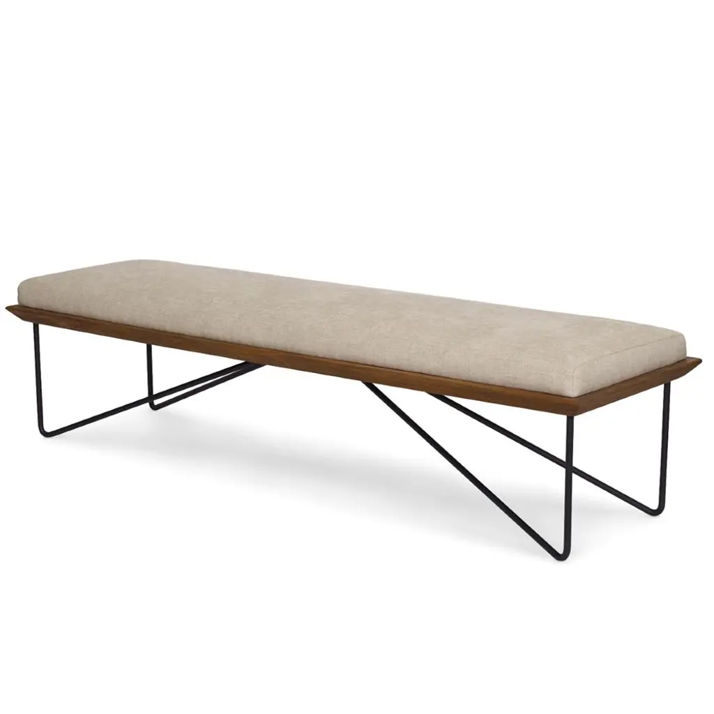 Grady Modern Classic Beige Performance Brown Teak Wood Bench