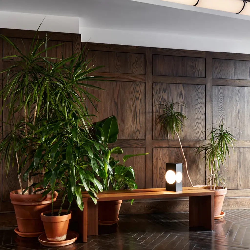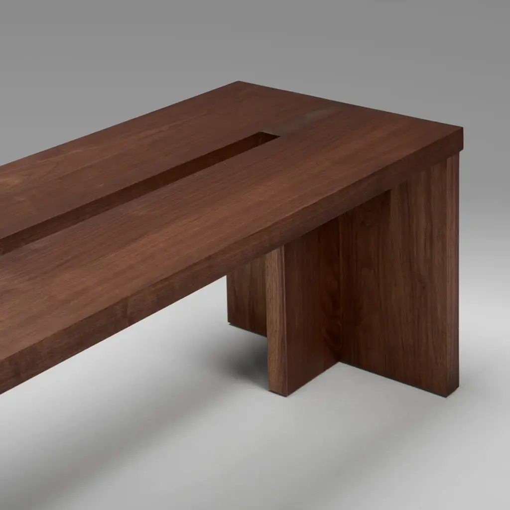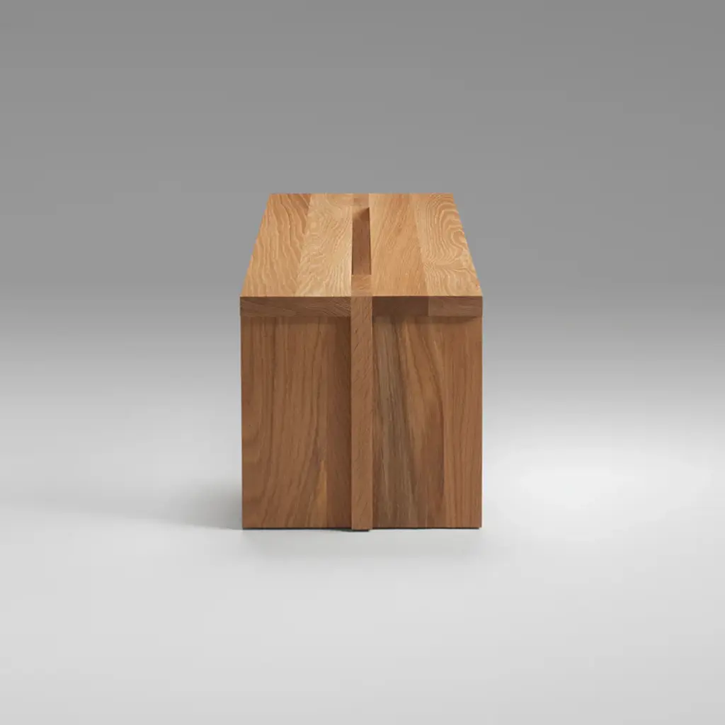 Indulge in the refined luxury of the Grange Bench from Roll & Hill. Originally crafted for the Inness resort, this piece is a tribute to the surrounding landscape of Hudson Valley, with its simple yet sturdy design. The orthogonal planes and oversized elements make it a statement piece that exudes elegance and a touch of the rustic. Highlights