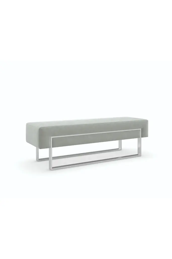 A soft landing at the start or end of day, this multifunctional bench lends a sophisticated finishing touch in a dove-colored velvet. An artful interpretation of Euro-modern simplicity and balance, its minimalist base adds a metallic accent in Smoked Stainless Steel. Perfect for the end of bed, or as a sleek seat in the hall or entryway.