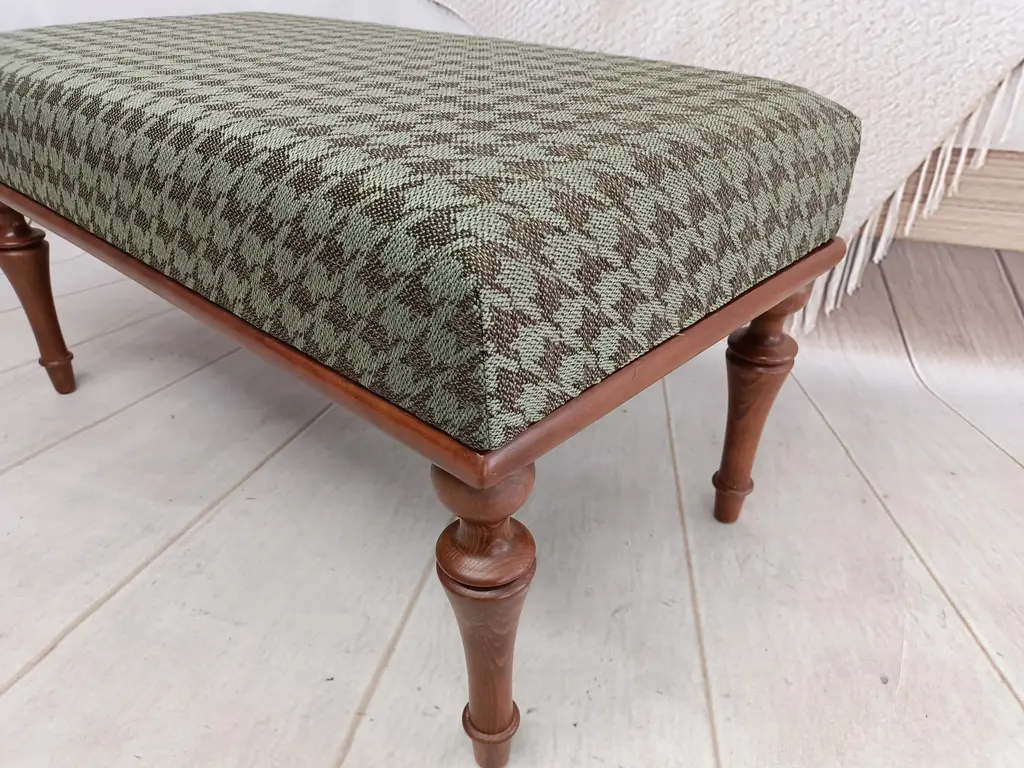 Details SIZE: 18X18X36 Inches ( with legs ) - 45x45x90 cm TYPE: Handmade Ottoman Bench CONDITION: is good. CONSTRUCT: It will come with disassemble legs, you can easily put together ottoman top table ( body ) with legs. There is disassembled legs with screw. Set up time around 30 seconds. Please use soft floor to set up. MATERIALS: Fabric Hornbeam Body, Textile and zipper backside, poplar wood inside CLEANING: Professionally Cleaned and Disinfected