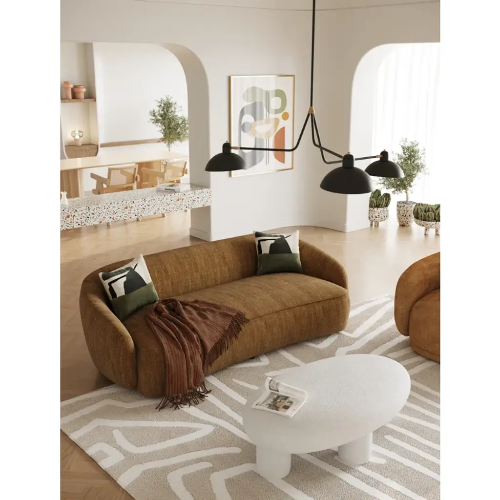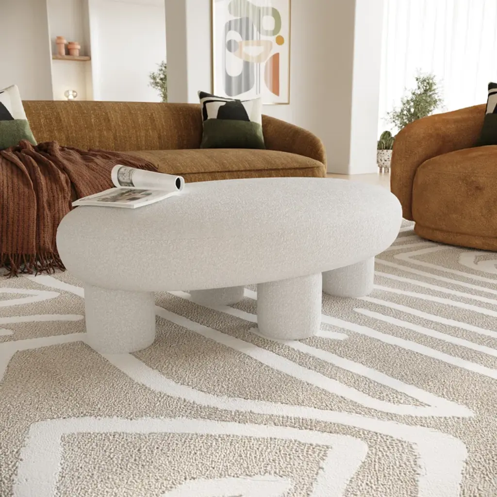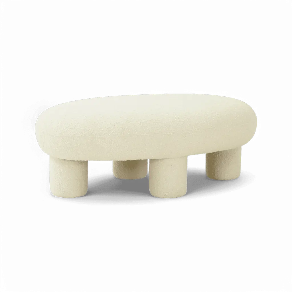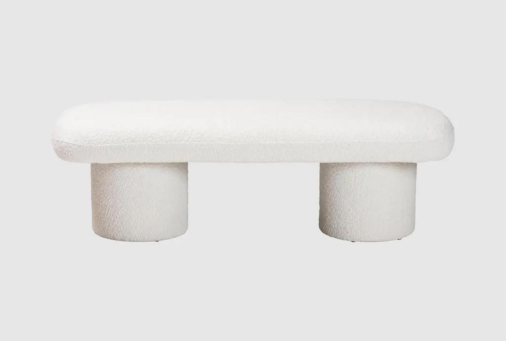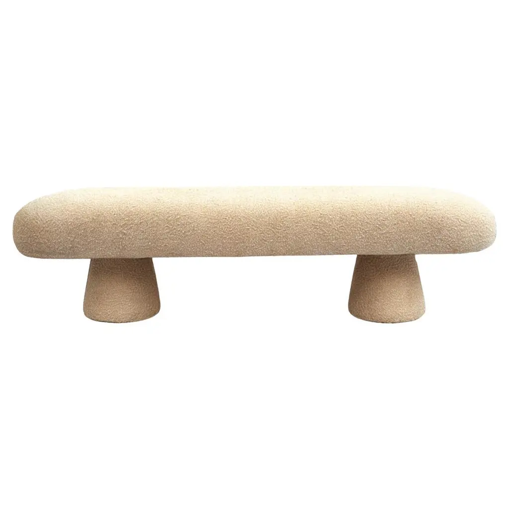 The Greene Modern Off-White Fabric Bench is a fully upholstered bench/ottoman that exudes contemporary elegance. Its off-white color complements various interior styles. Upholstered in 100% polyester fabric, it features a foam cushion fill, four sturdy legs, and a solid pine frame. Ideal for adding both comfort and style to your living space.