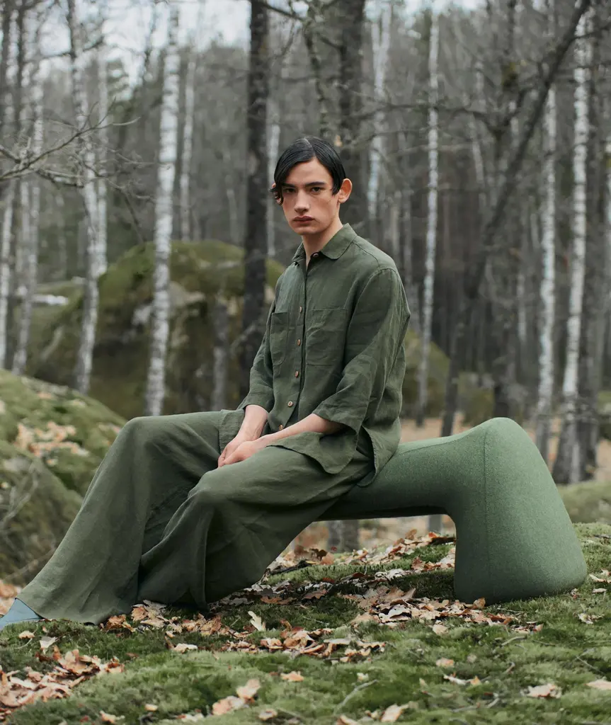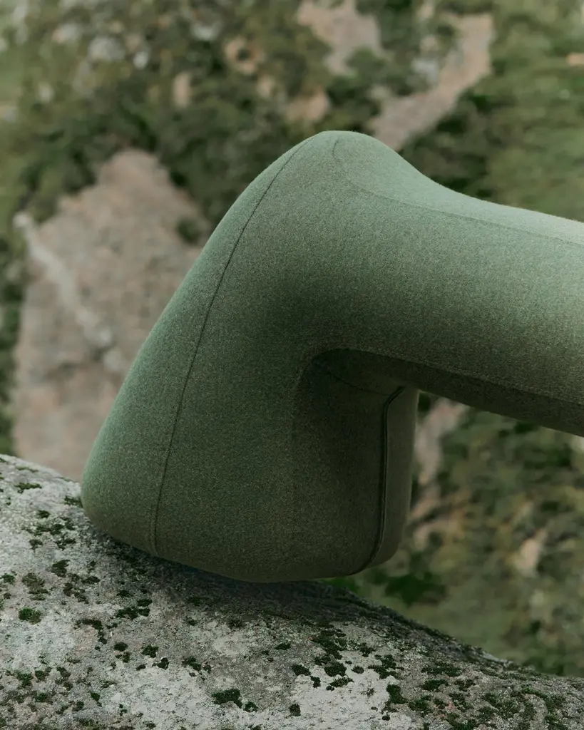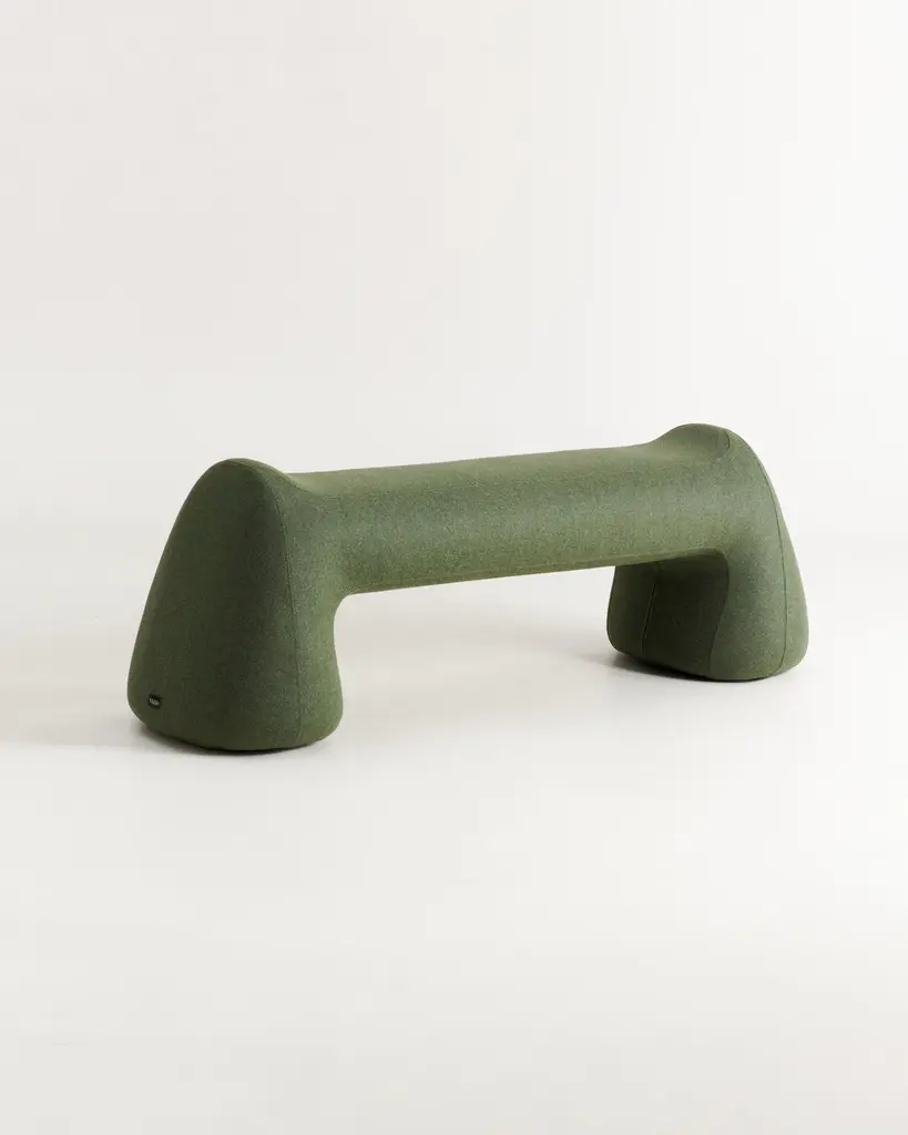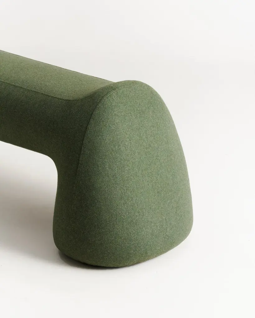 MATERIAL: textile, foam rubber, sintepon, wood.Colors palette: more than 40 colors in 3 categories are available.Please kindly note that handcrafted items may slightly differ in shades and textures. Only for indoor use. The bench has a soft seat. Upholstery is not removable.The bench further explores the theme of animism, featuring forms that evoke a sense of life. Inspired by nature's organic shapes, it captures the essence of animism with a fanciful design that recalls the charm of a magical forest creature.Who is Grun’? A magical forest inhabitant that lives in the Ukrainian Polesia, among ancient swamps and mossy forests, embodying a timeless essence, keeping the wisdom of the ages and giving peace and inspiration for what lies ahead. Forests and swamps are places, preserving the echoes of humanity's dawn and the origins of history. They are both ancient keepers of stories and ever-renewing organisms that stretch toward the future, reminding us that even through change, the essence of nature remains a source of ancient wisdom and renewal.
