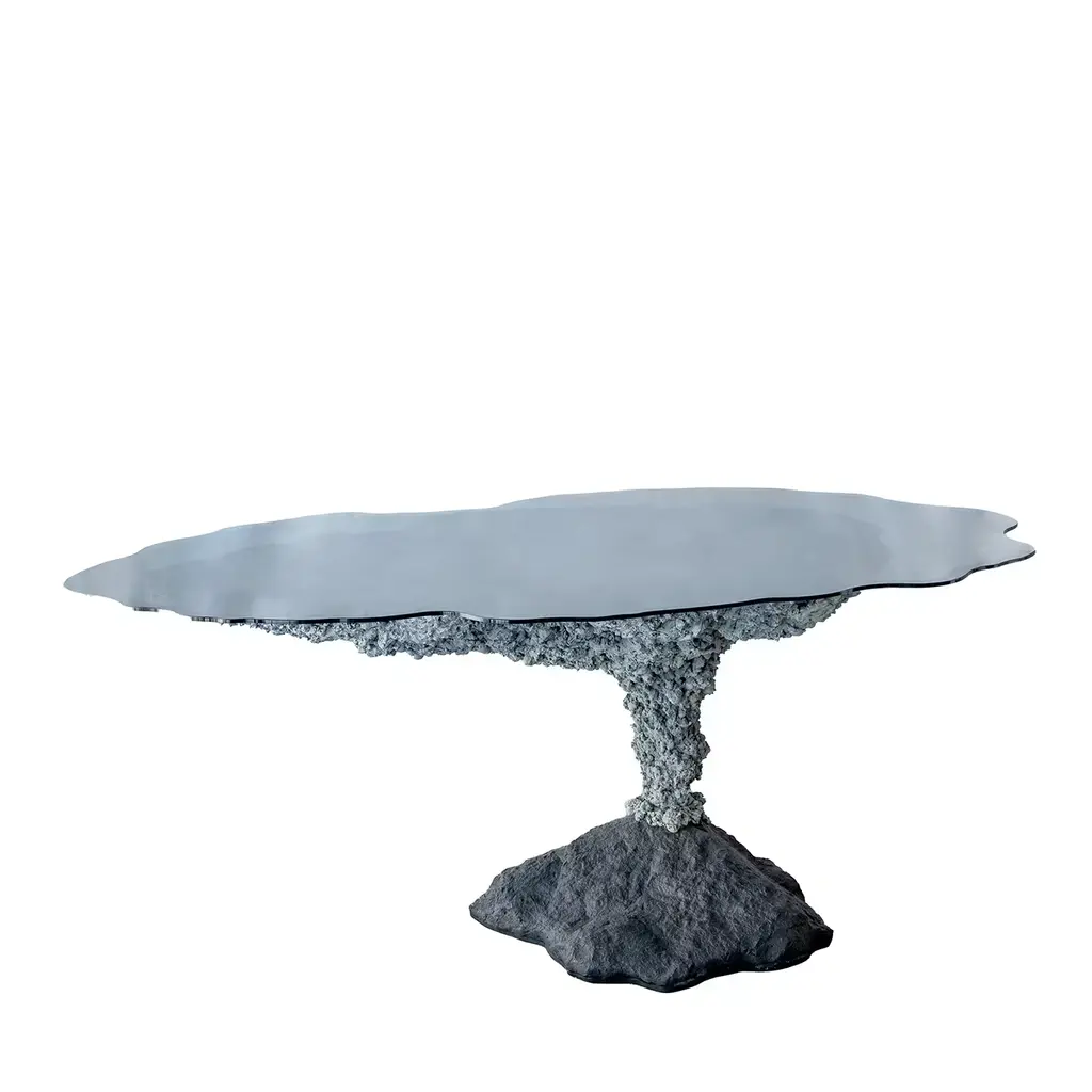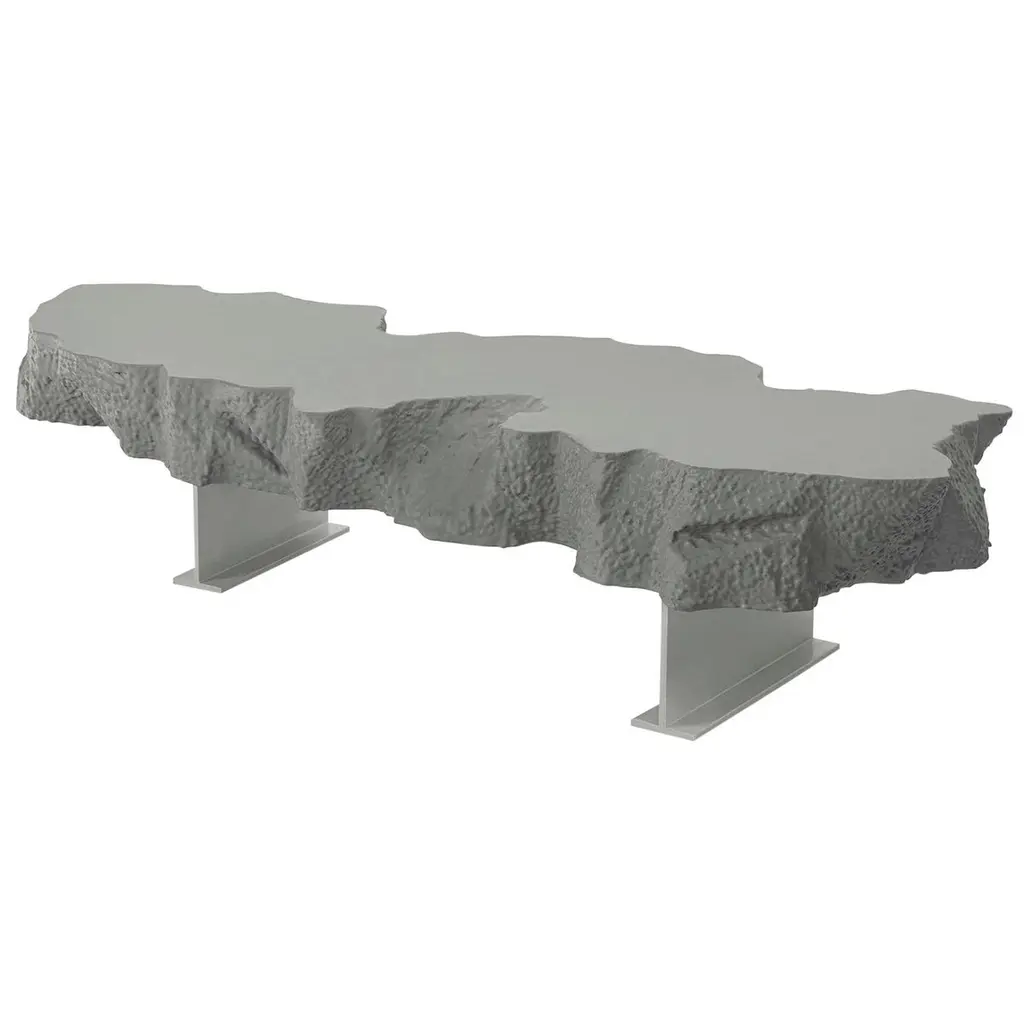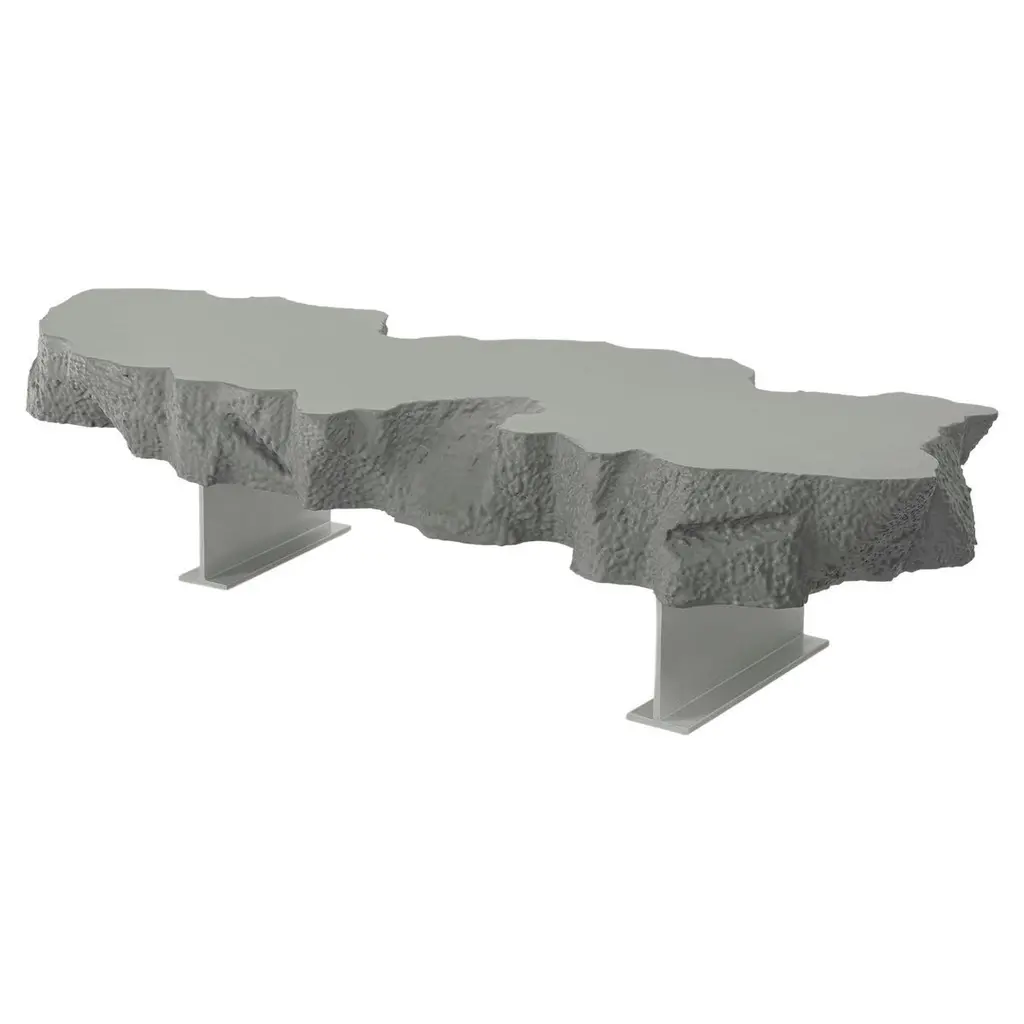 The Broken Bench, an irregular slab of “soft concrete” in polyurethane, seems to be the part missing from the large Broken Mirror, and just like the other pieces of the collection plays with the “short-circuit” between the actual softness of the material and its appearance. An unusual addition both for domestic and public spaces, the bench is supported by beams in a highly resistant plastic agglomerate which highlights the piece’s industrial look.The polyurethane framing the mirror is rough-hewn entirely by hand; for this reason each Broken Mirror piece is slightly different from another, and it is thus a unique item. Open edition.Production lead times are often flexible and stock levels vary.Materials:Metal supports and seat in soft polyurethane hand finished with Guflac.Dimensions:190 x70 x 43 cm.NB. LANDED PRICE USA, shipments details to enquire