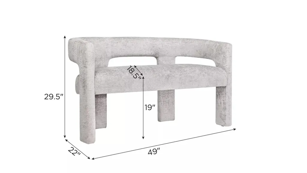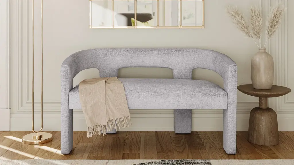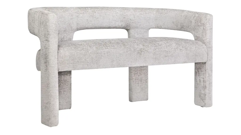With a luxurious modern sculpted style and an absolutely stunning Jacquard fabric, the Gwen Bench is soft to the touch and the perfect upgrade for your home. The rounded back with integrated arms offers both flexibility and functionality, making it ideal for use as an accent piece in your living room or as guest seating in your dining room. The modern textured fabric on a deep seated frame provides visual depth and contrast, and no assembly is required so you can enjoy it right away.