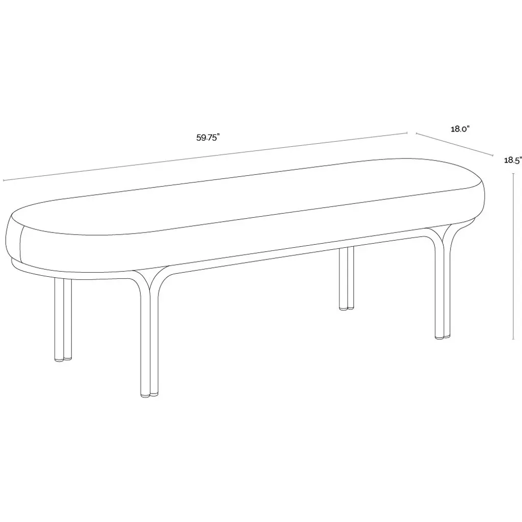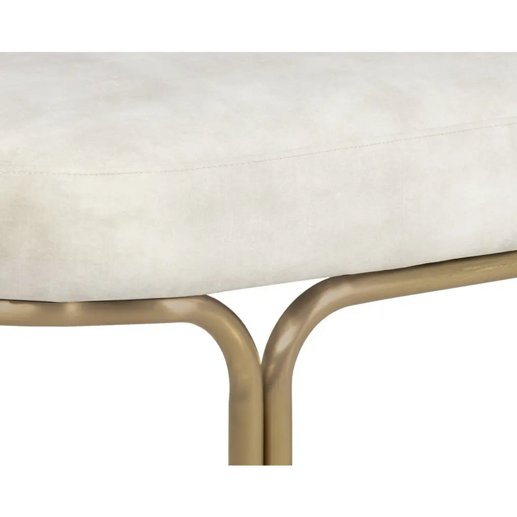 Boasting a classic oval shape, this elegant bench is a stylish and functional addition to any space. Stocked in nono cream and shitake fabrics, and completed with a gold iron frame.