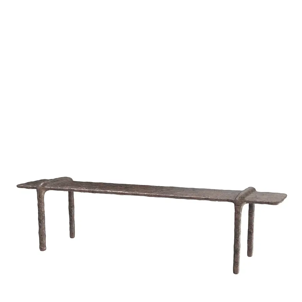 Twist Bench by CEUL 8'2" - W 1'2"" x H 14"The item is customizable by sizeOur solid wood benches are made from reclaimed antique exotic wood timbers that are carefully hand carved and sanded to highlight the natural beauty of the material.CEU Studio is a multidisciplinary practice that works at the intersection of design, architecture and timeless craftsmanship to create a collection of soulful treasures for daily living.Lead time 16-20 weeks