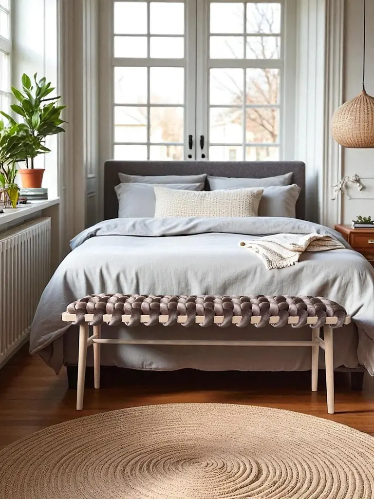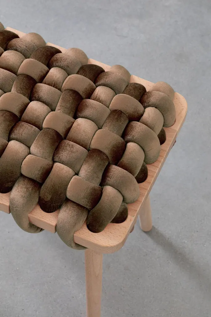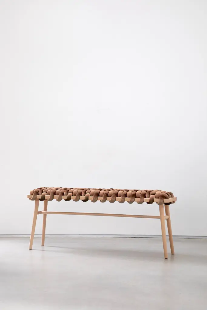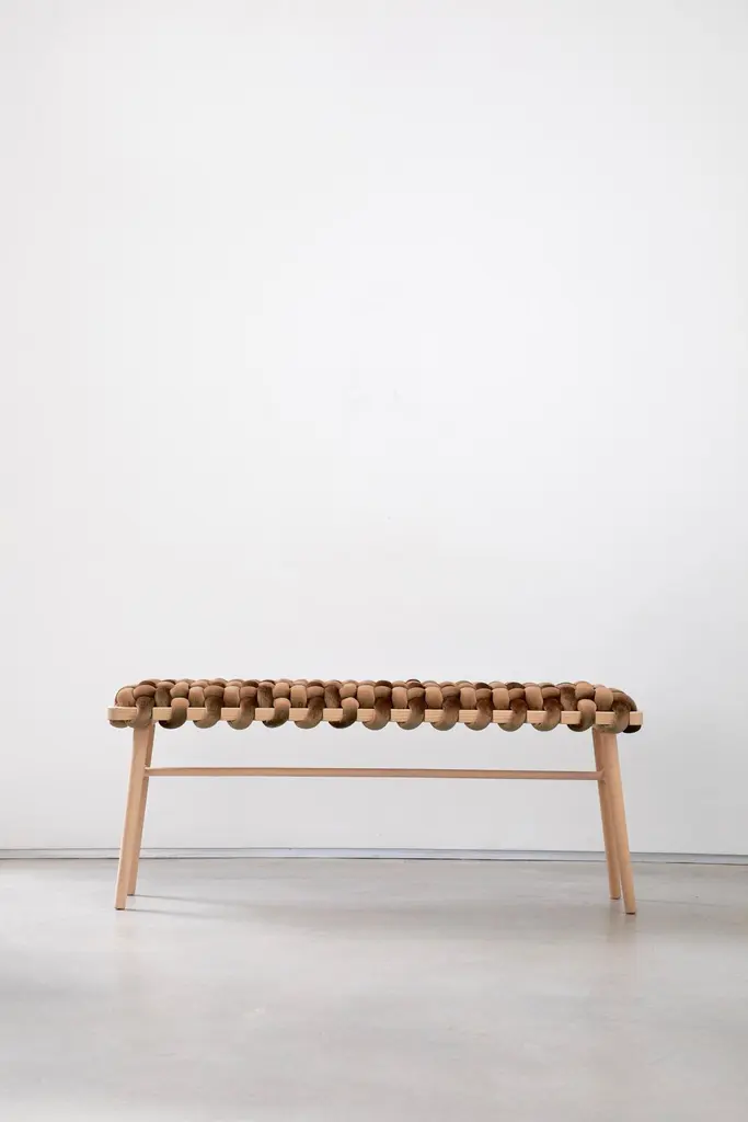 Born of appreciation for elegance, the woven bench is a handmade piece that brings a sculptural, playful air to any entryway or living space. Each bench is crafted with care using a weaving technique that blends fine velvet fabric and natural Beechwood that is beautiful, functional and lasts for years.