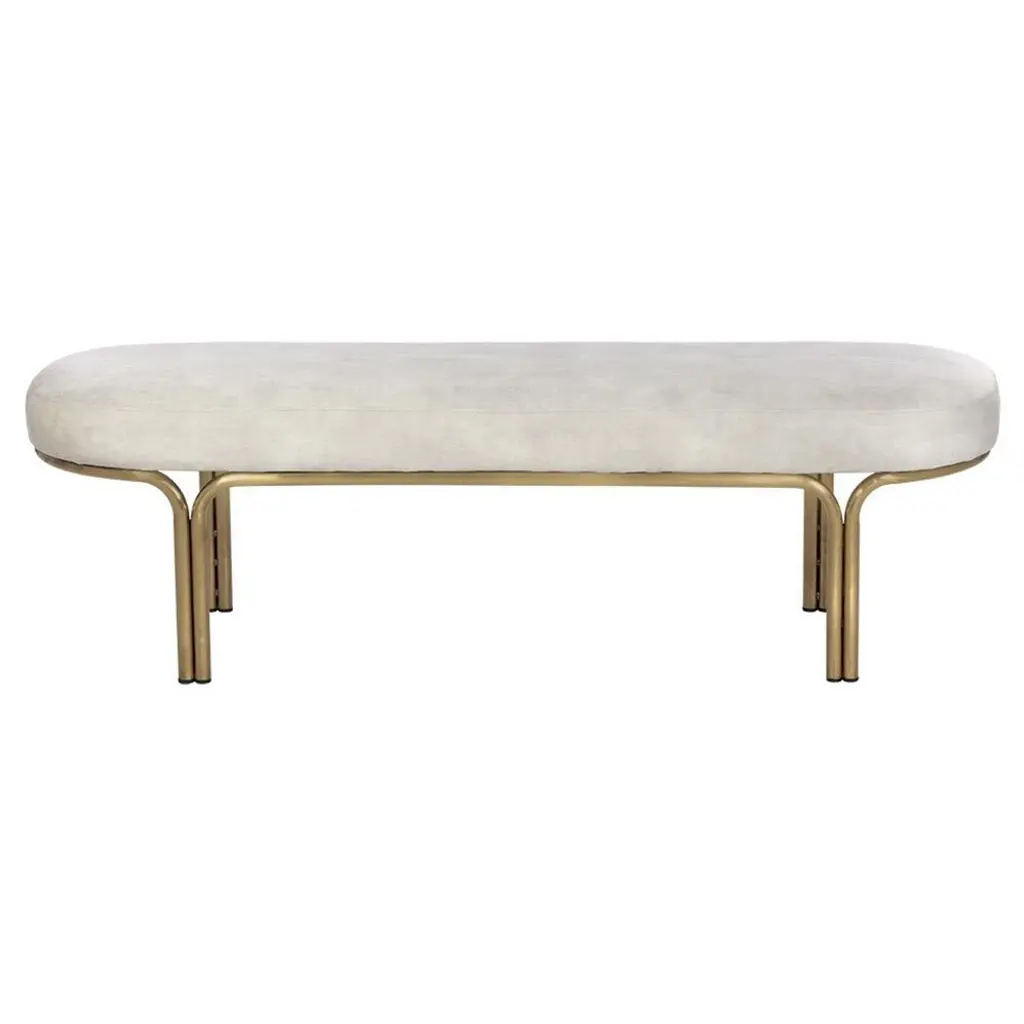 The shiny brass legs of the Harlow Bench bring statement-making style to this completely chic and versatile accent.