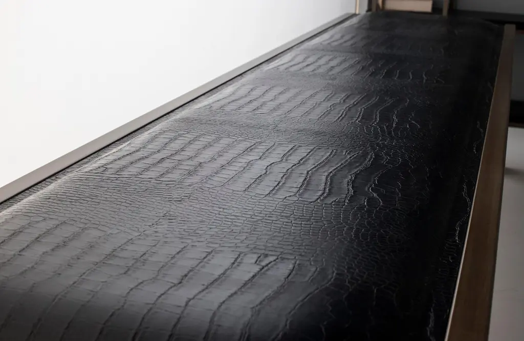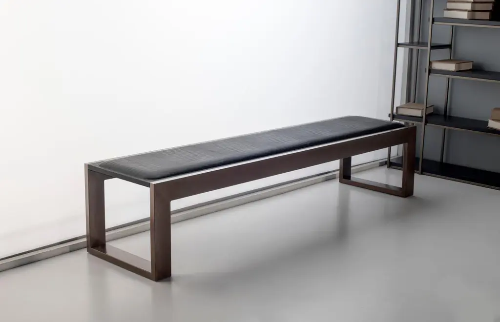 Hatch Bench by Doimo BrasilDimensions: W 200 x D 50 x H 45 cm Materials: Base: Aged Steel, Seat: Natural LeatherWith the intention of providing good taste and personality, Doimo deciphers trends and follows the evolution of man and his space. To this end, it translates into its products: simplicity, creativity and technology, creating a scenario that adapts to all lifestyles.Founded in 1994, it is currently an Italian-Brazilian joint venture located in Ribeirão das Neves, Minas Gerais, Brazil.
