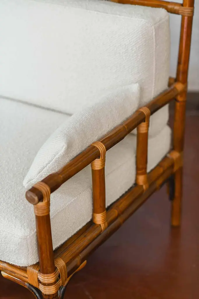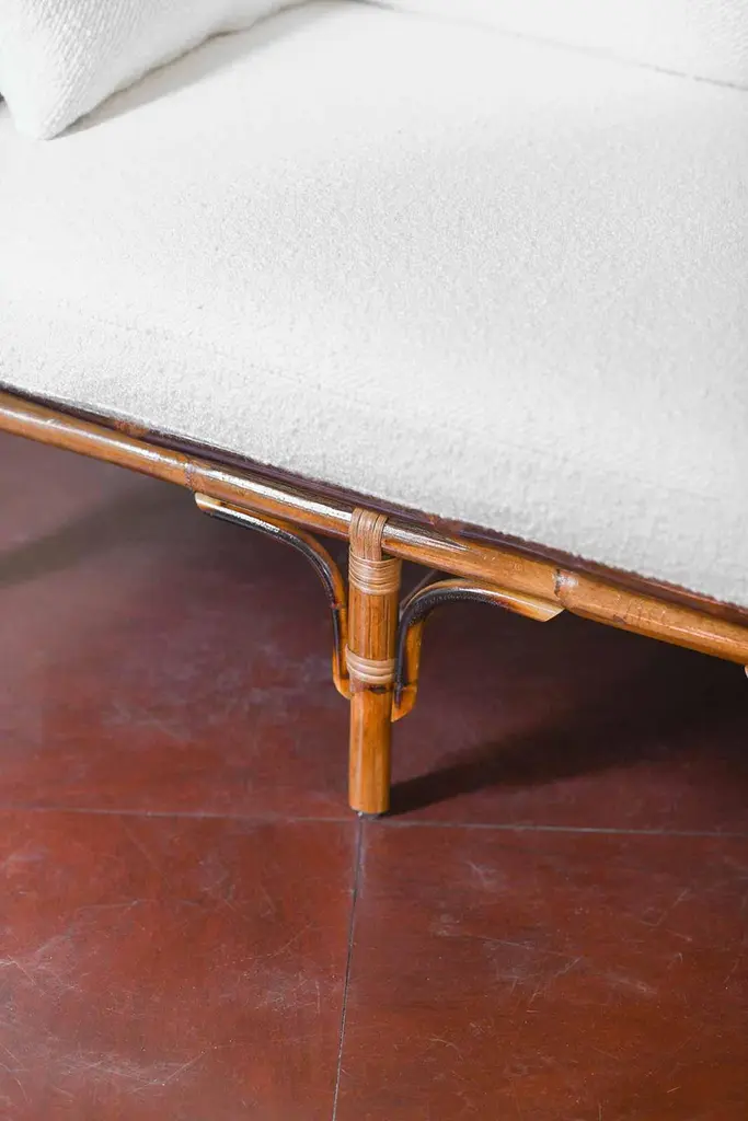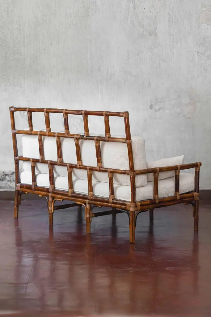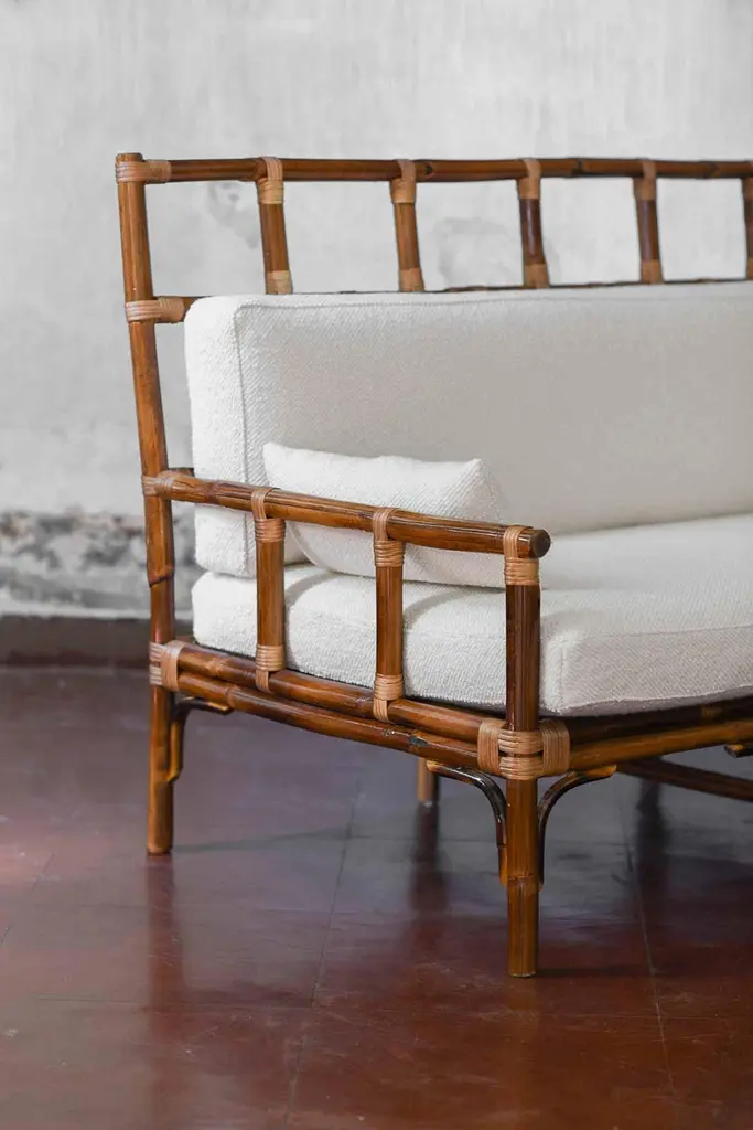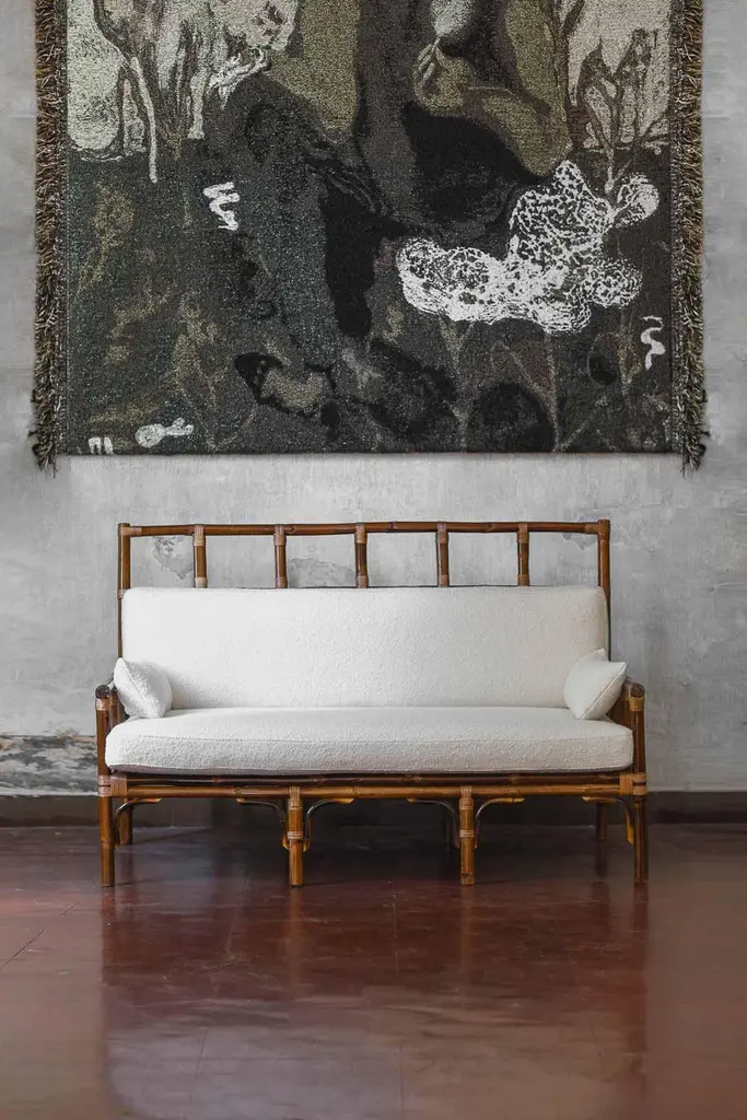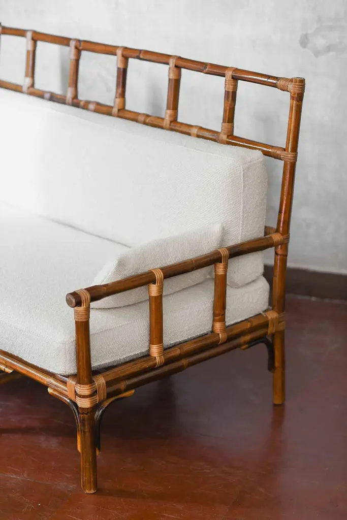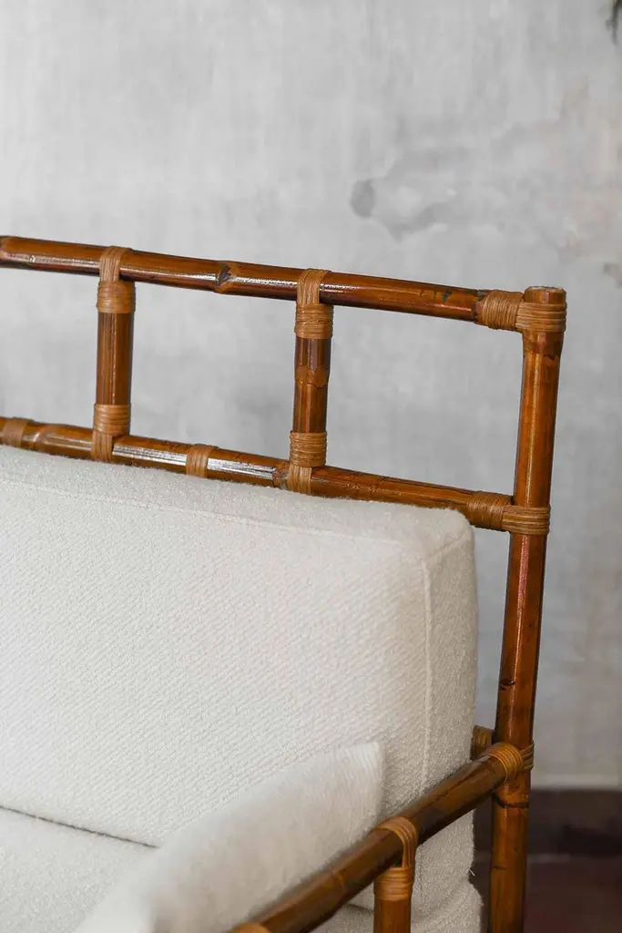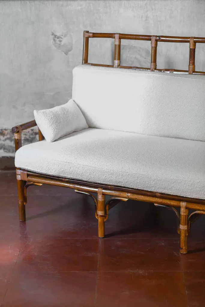 High Backrest Bamboo Bench With Leather Ligatures, Edizioni Molto