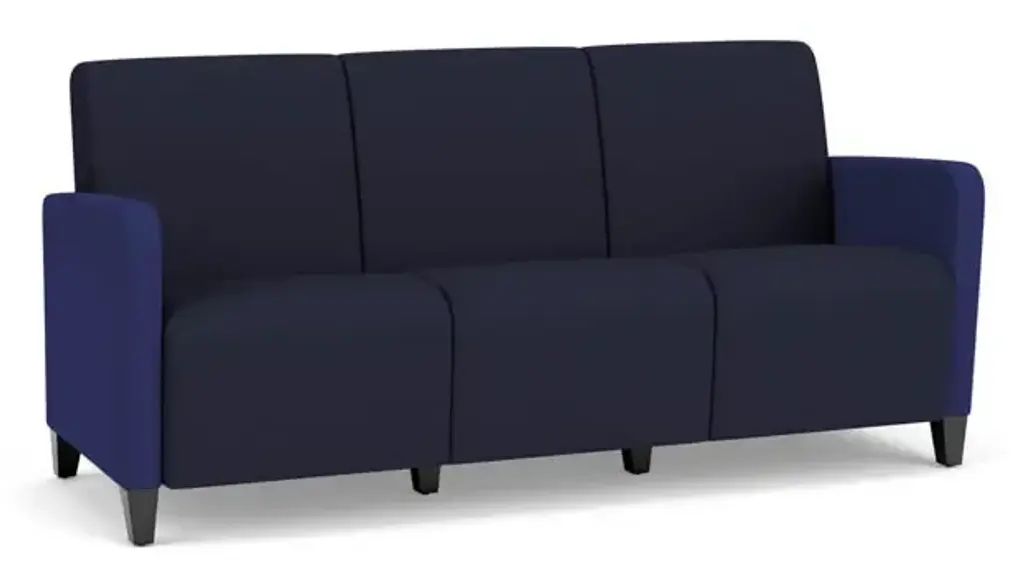 The Ravenna 3 seat bench with its pleasing rounded design and fully-upholstered styling will give your space a sophisticated and contemporary look. Designed for high-use reception areas and lounges. Features include heavy-duty construction, generous sizing, solid wood or steel legs, and a long-life-comfort Matrex seat support system. Several fabric upholstery options. 400 lb. weight capacity per seat. Overall Dimensions: 64.5" W x 20" D x 18" H. Seat height 18", width 64-1/2". Ships ready for easy assembly.