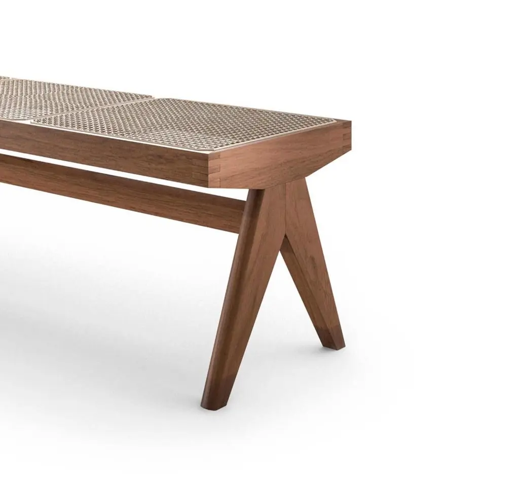 Hommage À Pierre Jeanneret Civil Bench For CassinaIncluded in Cassina’s study of the furnishings of the city of Chandigarh, the Civil Bench in Viennese cane, a tribute to Pierre Jeanneret, is distinguished by sleek shapes and simple materials poised between modern European ideals and the traditional Indian spirit.The original, crafted to furnish the homes of the members of the city’s Legislative Assembly, is composed of a seat with solid wood structure held up by two lateral supports in the shape of an inverted “V”; features that, along with the Viennese cane seat, form the hallmark feature of the entire Collection. STRUCTUREStructure in solid teak or oak.CANEWoven Viennese cane.DETAILSide supports in the shape of an upside-down “V”.Cassina continues its study of the furniture of the city of Chandigarh and adds the Civil Bench to the Hommage à Pierre Jeanneret Collection; a collection that stands out for its essential forms and simple materials, a balance between modern European ideals and traditional Indian spirit. The bench, produced between 1955 and 1956 for the lodgings and apartments of the members of the Indian city’s Legislature Assembly, consists of three consecutive seat elements supported by a single frontal crossbar and two side supports positioned in the shape of an inverted "V". The seat has the typical weaving that recurs in all the Collection, while the Cassina Research and Development Centre proposes two variants for the wooden frame, in natural oak and stained black oak, in addition to the historic teak version, that are produced in the company’s historic carpentry workshop. Optional cushions are available for added protection and comfort.Important information regarding images of products:Please note that some of the images show other colors and variations of the model, these images are only to present interior design proposals. The item that is selling is on the first image.Important information regarding color(s) of products:Actual colors may vary. This is due to the fact that every computer monitor, laptop, tablet and phone screen has a different capability to display colors and that everyone sees these colors differently. We try to edit our photos to show all of our products as life-like as possible, but please understand the actual color may vary slightly from your monitorAbout Manufacture:Established in 1927 by Cesare and Umberto Cassina in Meda, Italy, Cassina launched industrial design in Italy in the 1950s, based on a totally innovative approach that marked the transition from artisan production to mass production. With a mindset focused on research and innovation, Cassina combines technology and long-standing artisan craftsmanship. Memory, research, innovation. Cassina blends traditional skills and superior productivity, meticulous attention to detail and passion, uniqueness and experimentation, wellbeing and sustainability. Today, the company continues to address new lifestyles with the creation of complete, harmonious interior decor solutions that embody the best contemporary design for all areas of the home.