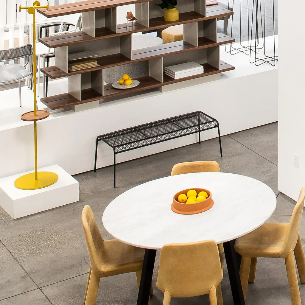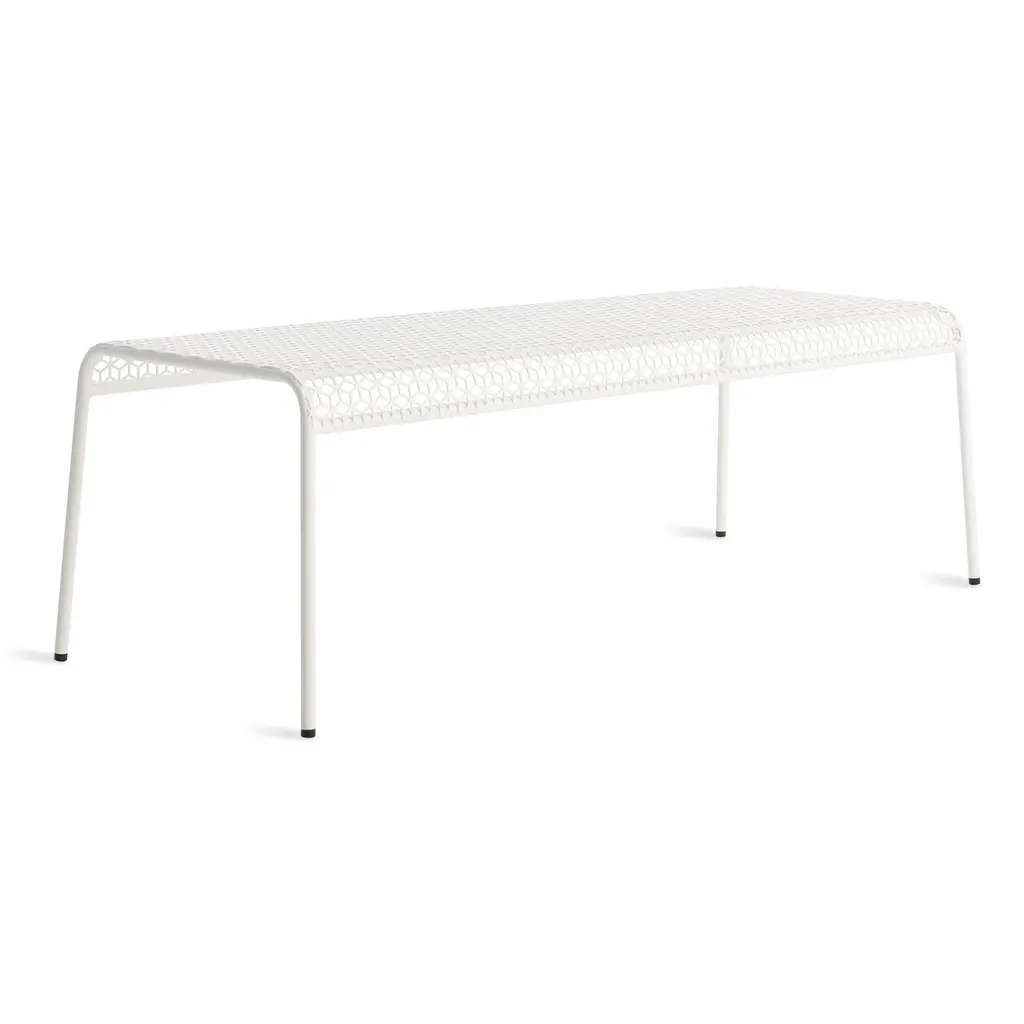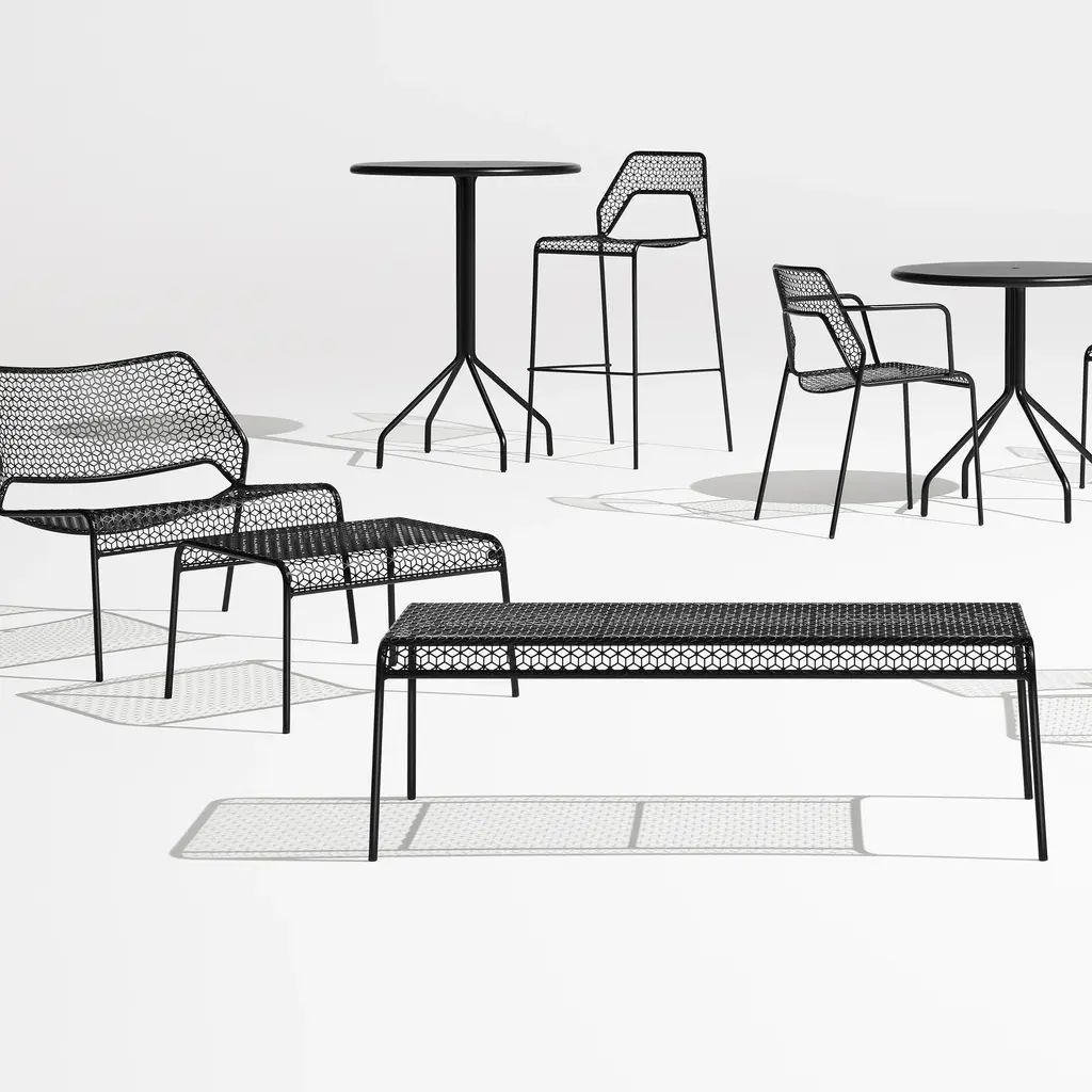 Bring comfortable and stylish seating to your home or outdoor space with the Hot Mesh Bench from Blu Dot. This punctured metal bench offers a bold graphic pattern that will catch any eye while still maintaining a clean, light profile perfect for any environment. It's also stackable, making it easy to store away when needed. Highlights