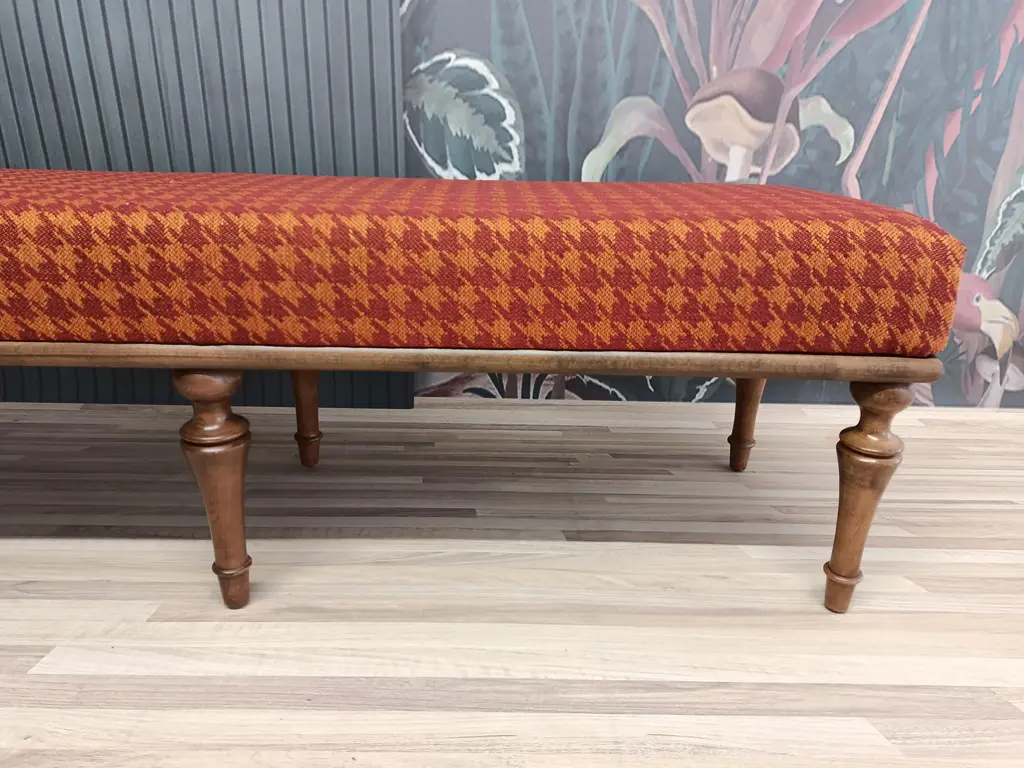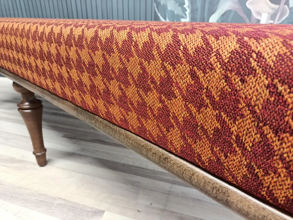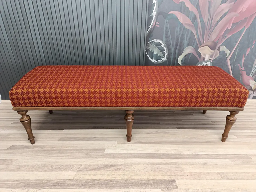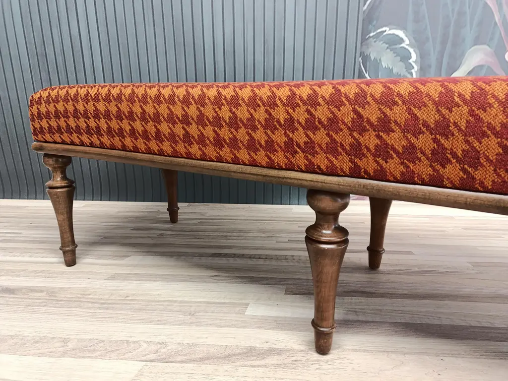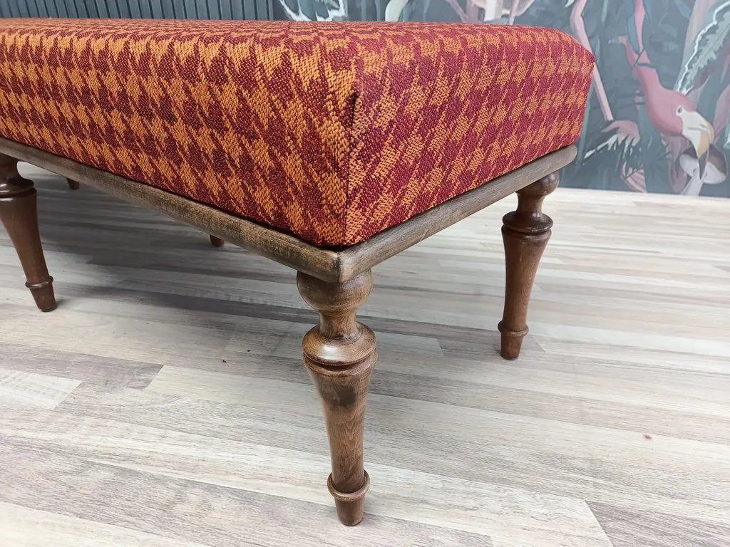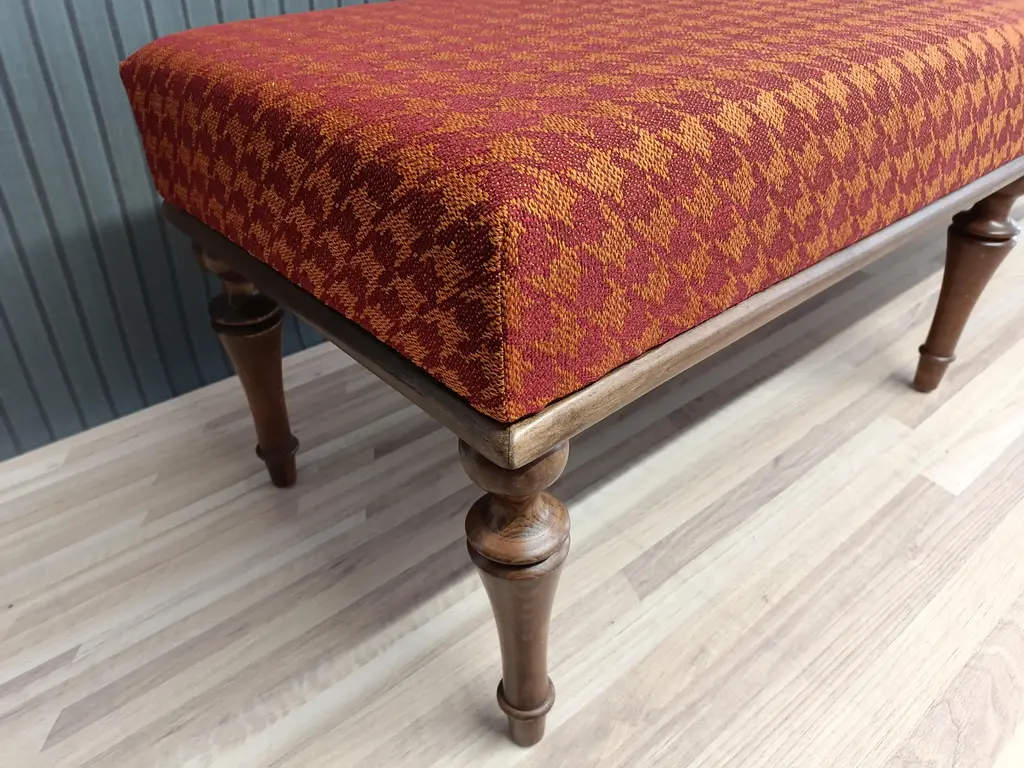 Details SIZE: 18X18X60 Inches ( with legs ) - 45x45x150 cm TYPE: Handmade Ottoman Bench CONDITION: is good. CONSTRUCT: It will come with disassemble legs, you can easily put together ottoman top table ( body ) with legs. There is disassembled legs with screw. Set up time around 30 seconds. Please use soft floor to set up. MATERIALS: Fabric Hornbeam Body, Textile and zipper backside, poplar wood inside CLEANING: Professionally Cleaned and Disinfected
