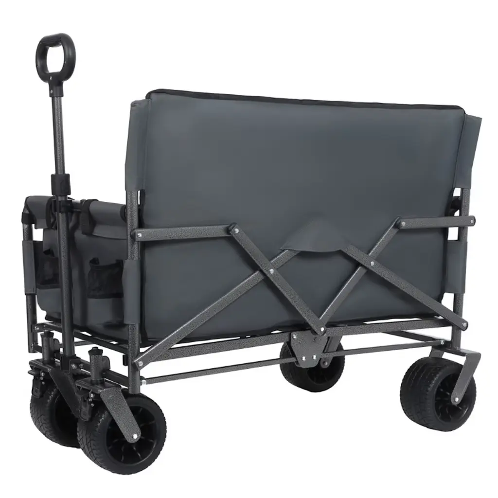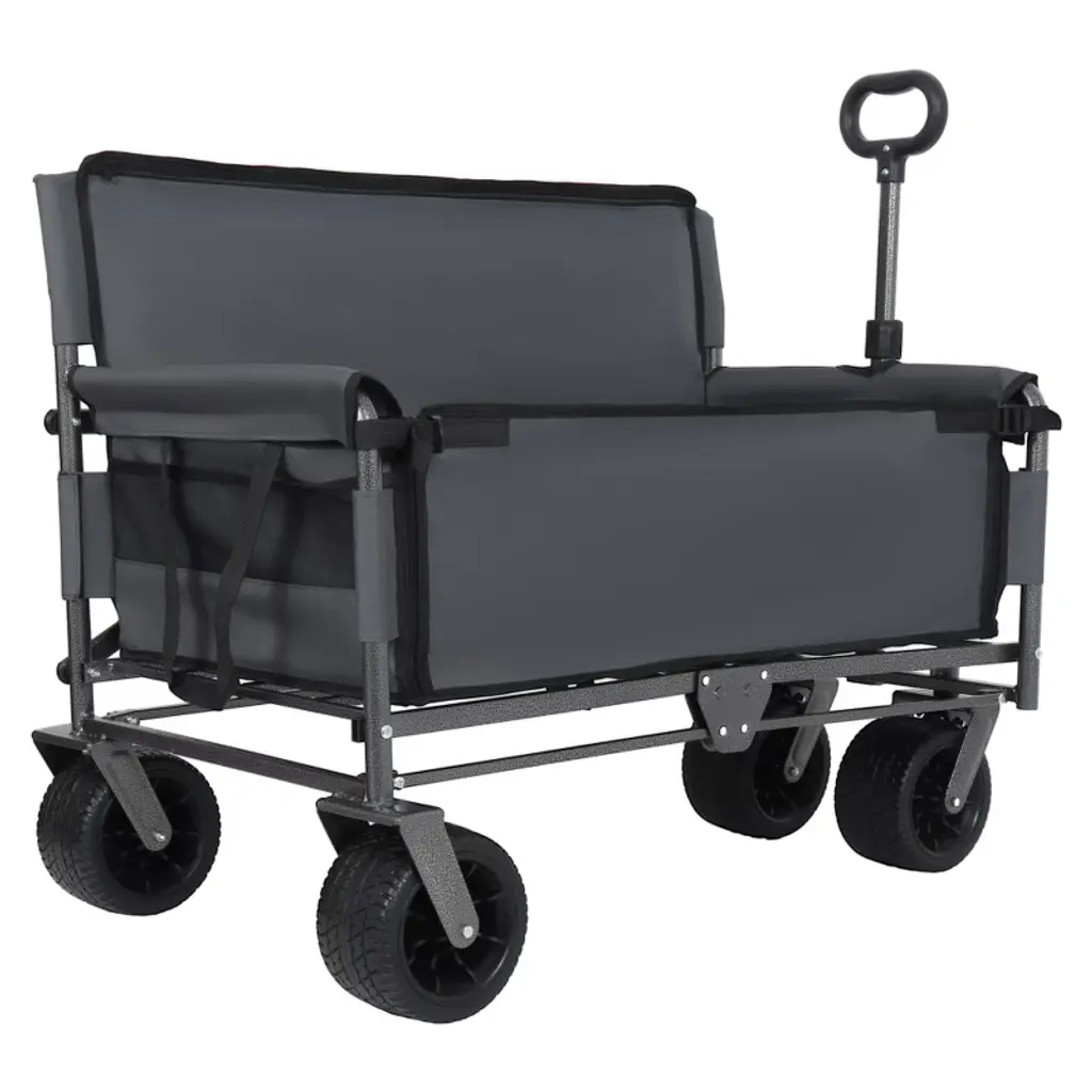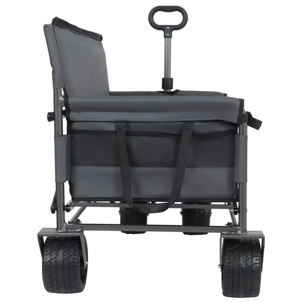 Htutwoo Collapsible Folding Utility Cart Wagon, Outdoor Garden Wagon Cart With All-terrain Wheels, Bench Seat & Storage 220 Lbs Weight Capacity,gray