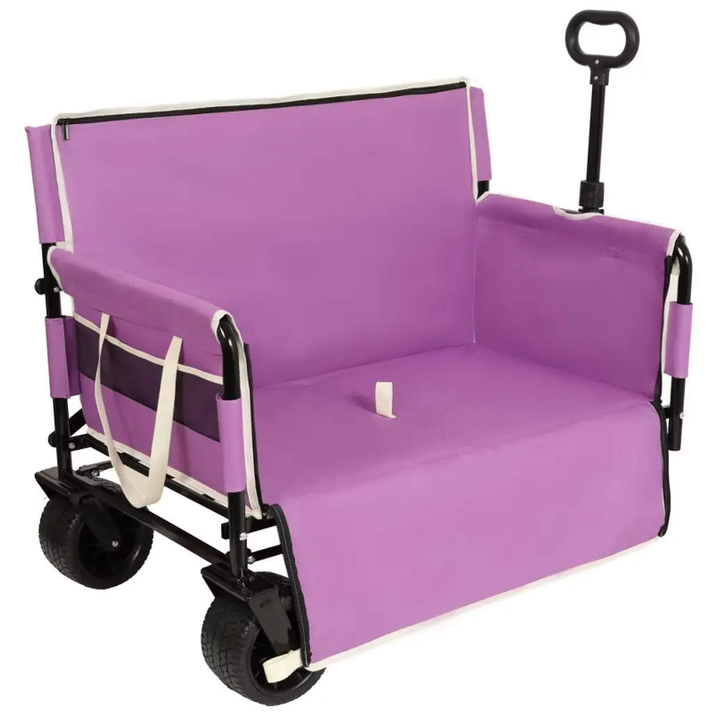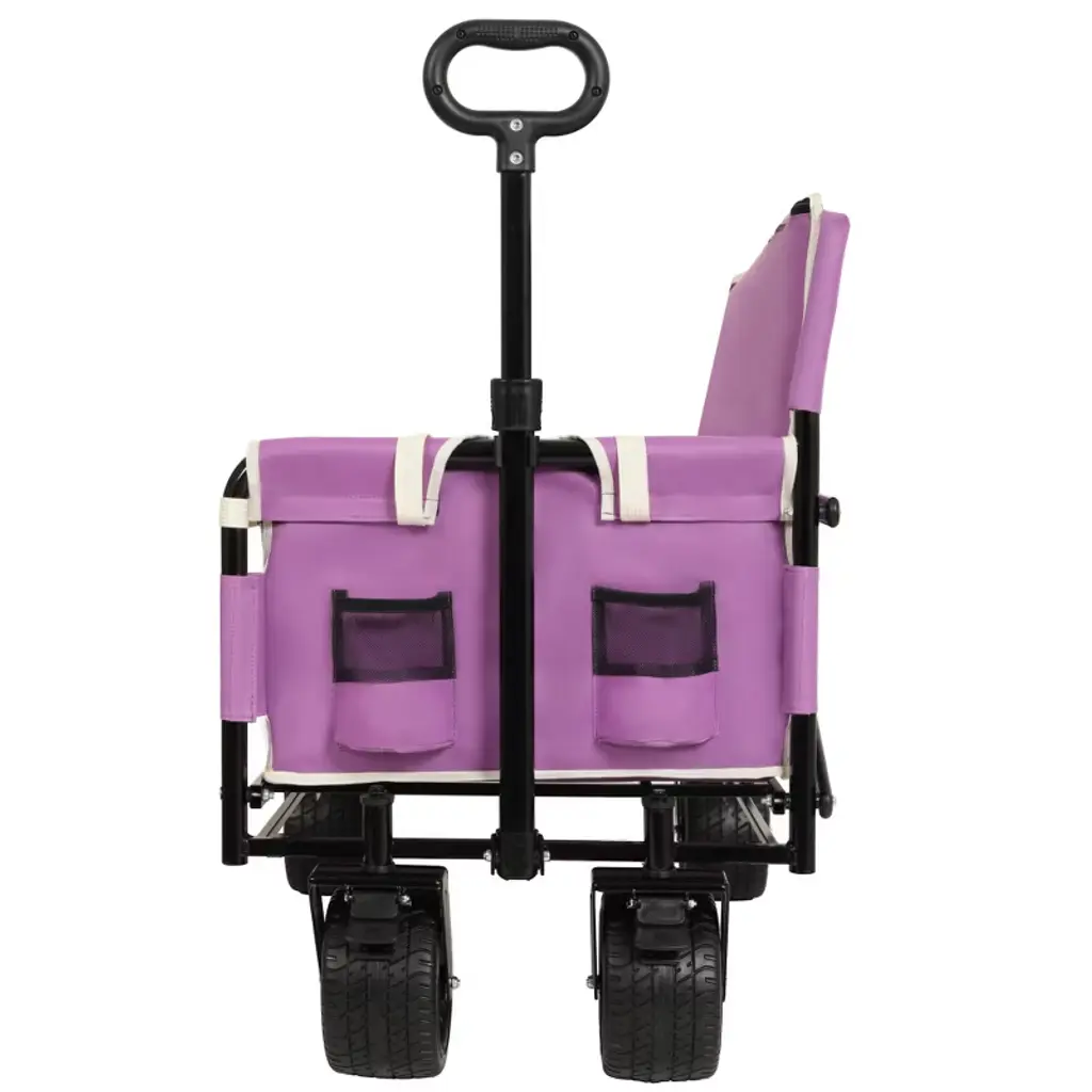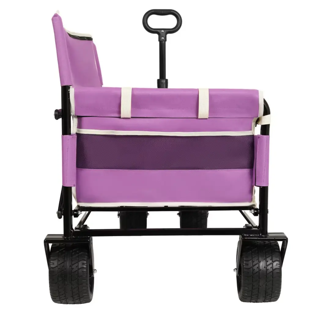 Htutwoo Collapsible Folding Utility Cart Wagon, Outdoor Garden Wagon Cart With All-terrain Wheels, Bench Seat & Storage 220 Lbs Weight Capacity,purple