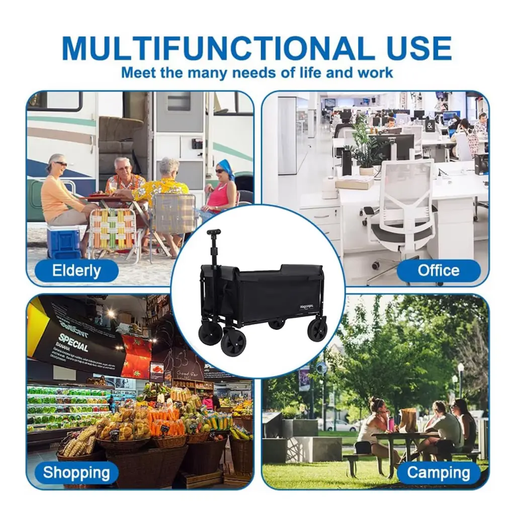 Multi-Functional Seat Wagon - UNIQUE SEAT CONVERSION - Doubles as a secure seating solution. Reinforced frame and padded base safely support children or adults. Side zippers allow easy entry/exit, ideal for parks, camping, or event venues. Perfect for tired little legs, elderly companions, or impromptu seating at outdoor gatherings.