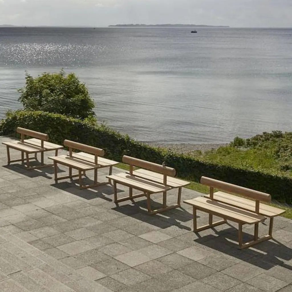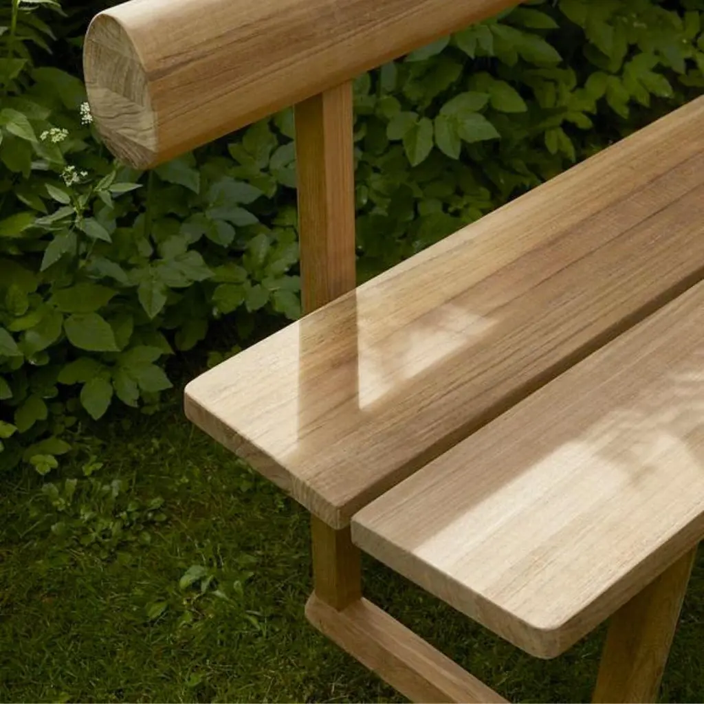 Hugo Passos outdoor 'Banco' single teak bench for SkagerakSkagerak was founded in 1976 by Jesper and Vibeke Panduro, who took inspiration from their love of Scandinavian design and its rich tradition. The brand emphasizes sustainability by using responsibly sourced materials and production methods that minimize waste and reduce environmental impact. Each piece of handcrafted furniture is designed to age with grace and last for generations.Originally designed for an outdoor exhibition in Finland called Social Seating, the 'Banco' bench by Hugo Passos derives beauty from the simple premise of creating something that enhances the experience of nature. The organic backrest is both expressive and functional, perfectly shaped for the contour of the back. Available as a single or double and executed in FSC-certified teak to the exacting standards of Skagerak.Price per item. Available to order in unlimited quantities. Also available as a double bench, this listing is for the single 'Banco' bench executed in teak.In stock lead time 2-3 weeks. Out of stock lead time can be an additional 3-4 weeks, or longer. Lead times and stock availability are subject to change at any time and without notice. Please inquire for current lead times prior to placing time sensitive orders.Made to order.All sales final.