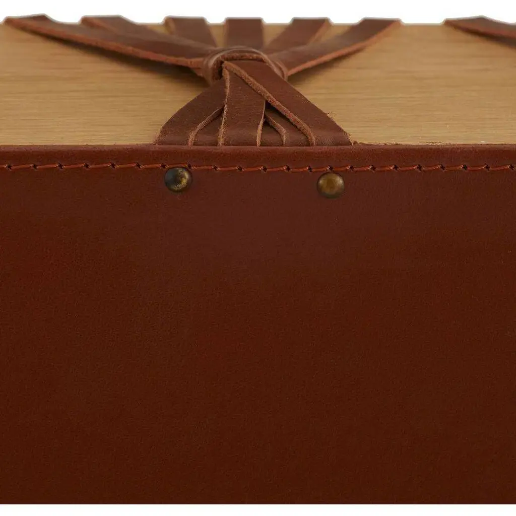 Hutchins Deep Russet Leather And Natural Oak With Antique Brass Bench