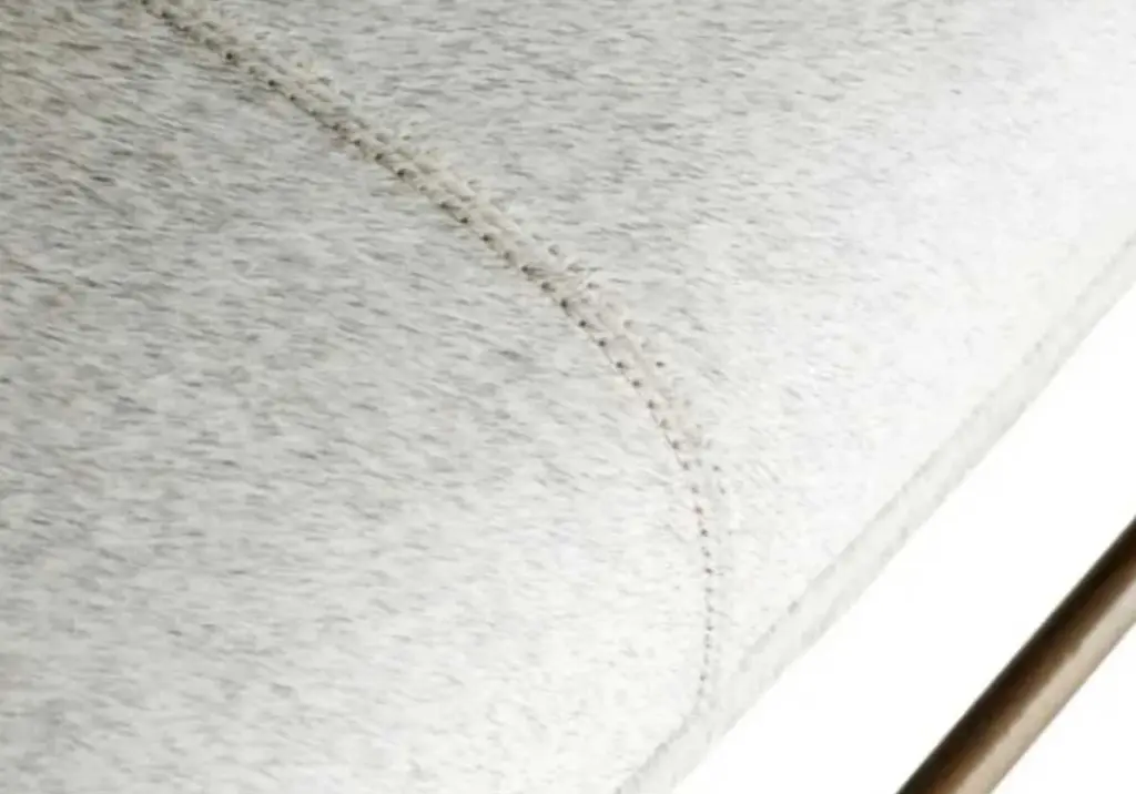 This bench lends simple elegance with its minimal, durable frame accentuated by tiered legs. Its thick, comfortable cushion is upholstered in natural hair-on-hide, for a textured, sophisticated touch. Style at the end of a bed or in a window nook for an elevated, high-class look.