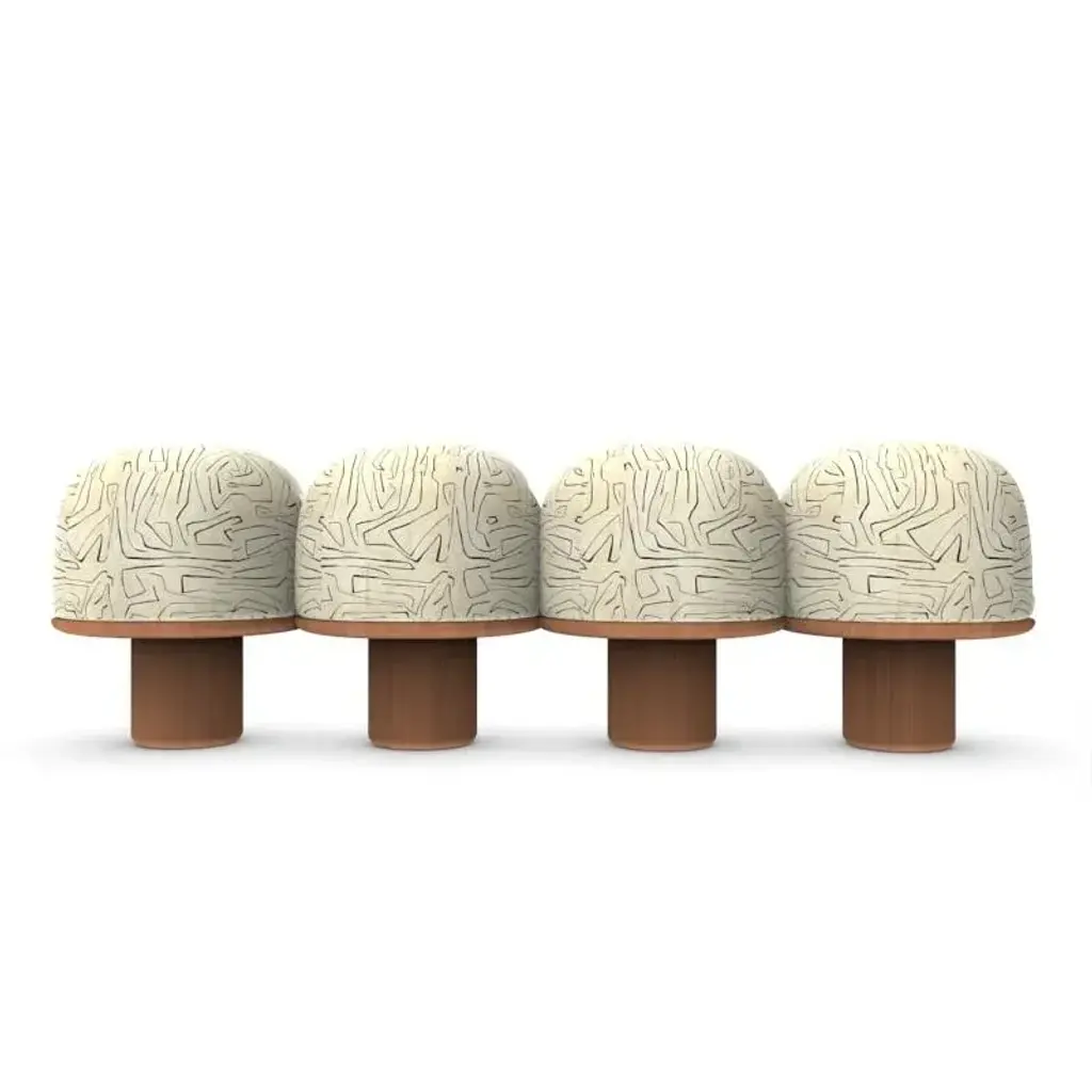 Hygge Bench in Graffito Linen Onyx Fabric and Smoked Oak by Saccal Design House for Collector, in New conditions. Designed from 2000