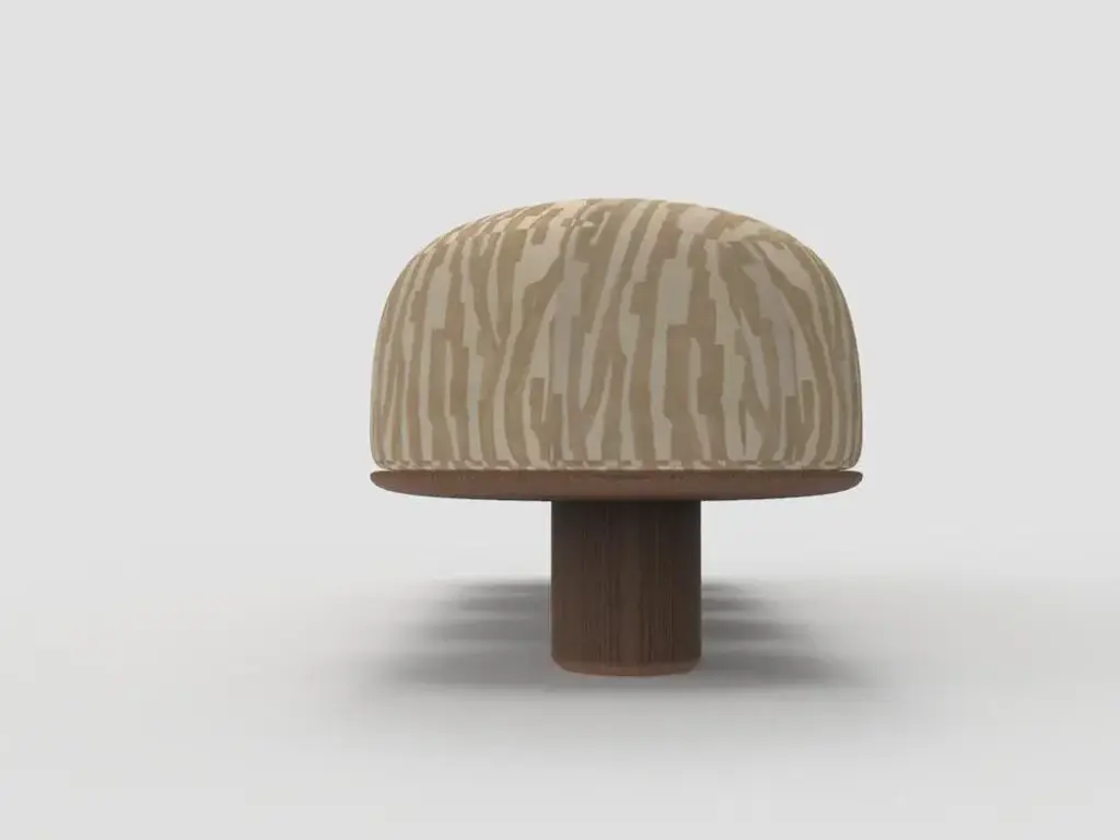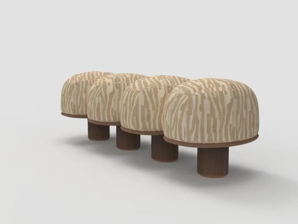 Hygge Bench in Intargia Buff Fabric and Smoked Oak by Saccal Design House for Collector, in New conditions. Designed from 2000