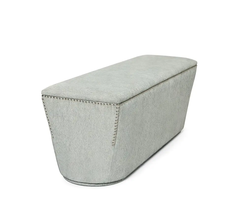 In Between 140 Bench by MunnaDimensions: D 40 x W 140 x H 50 cm. SH: 50 cm.Materials: Solid wood, foam, nickel, and upholstery.Finish: Upholstery: Silence Chenille, ref. Pale Green, SC04. Upholstery nails: Plated nickel.Available in all Munna fabrics except Wild Silk. Available in client’s ownmaterial. Upholstery nails are available in Matt or plated nickel, plated brass, bronze renaissance, or old gold speckled. Handmade in Porto. Please contact us.Established in Porto in 2008, Munna is a furniture design brand renowned for creating handmade upholstery with unmatched craftsmanship, seamlessly blending noble materials and timeless design, for both commercial and residential projects.Made by hand in Porto, Munna’s pieces honor the profound heritage of craftsmanship, while drawing inspiration from history’s most influential artistic periods. Munna’s pieces are made of the finest fabrics such as cotton velvet, twill, leather, and silk; the finest wood veneers, such as ebony, walnut, and rosewood; sumptuous gold, silver, and copper leaves, metal details in brass, nickel, and copper, and superior lacquers.