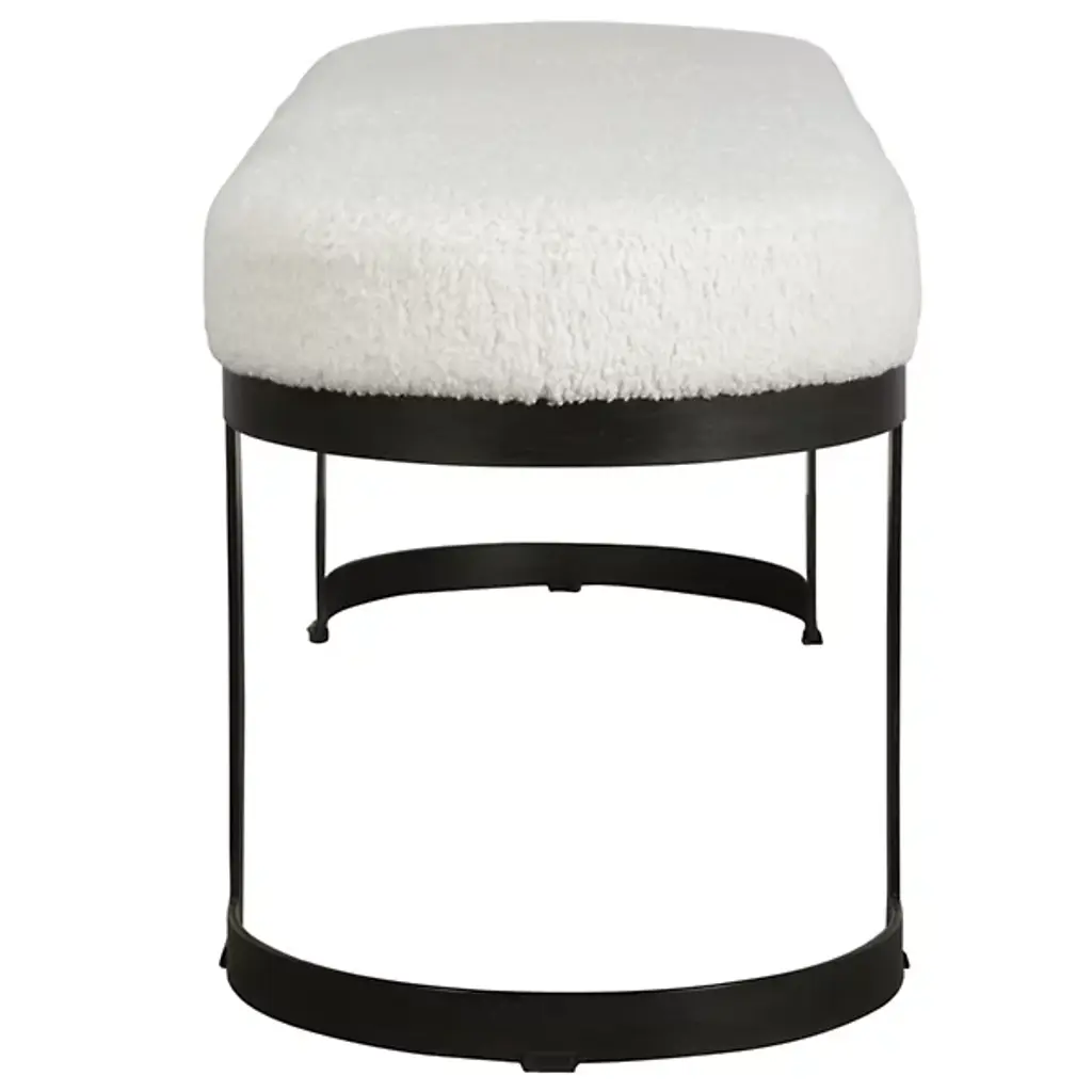 The Infinity Bench from Uttermost combines premium quality materials and a distinctive high-style design. With meticulous attention to advanced product engineering and reinforced packaging, this product is entirely safe during delivery, ensuring your purchase arrives in pristine condition. Crafted with simplicity and style in mind, this bench features a thick hand-forged iron base. The plush seat is adorned with natural faux shearling fabric, providing both comfort and sophistication to any space.